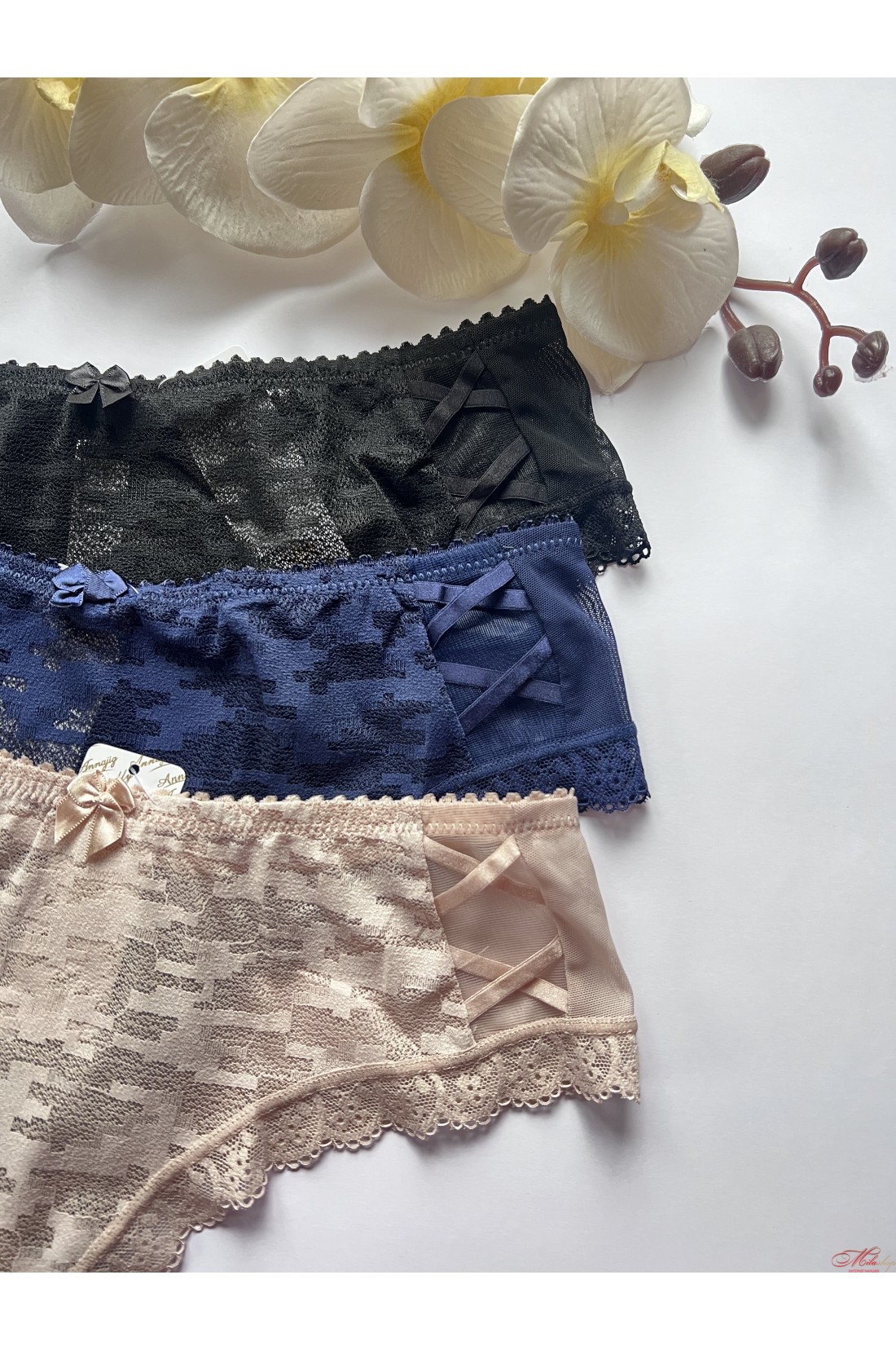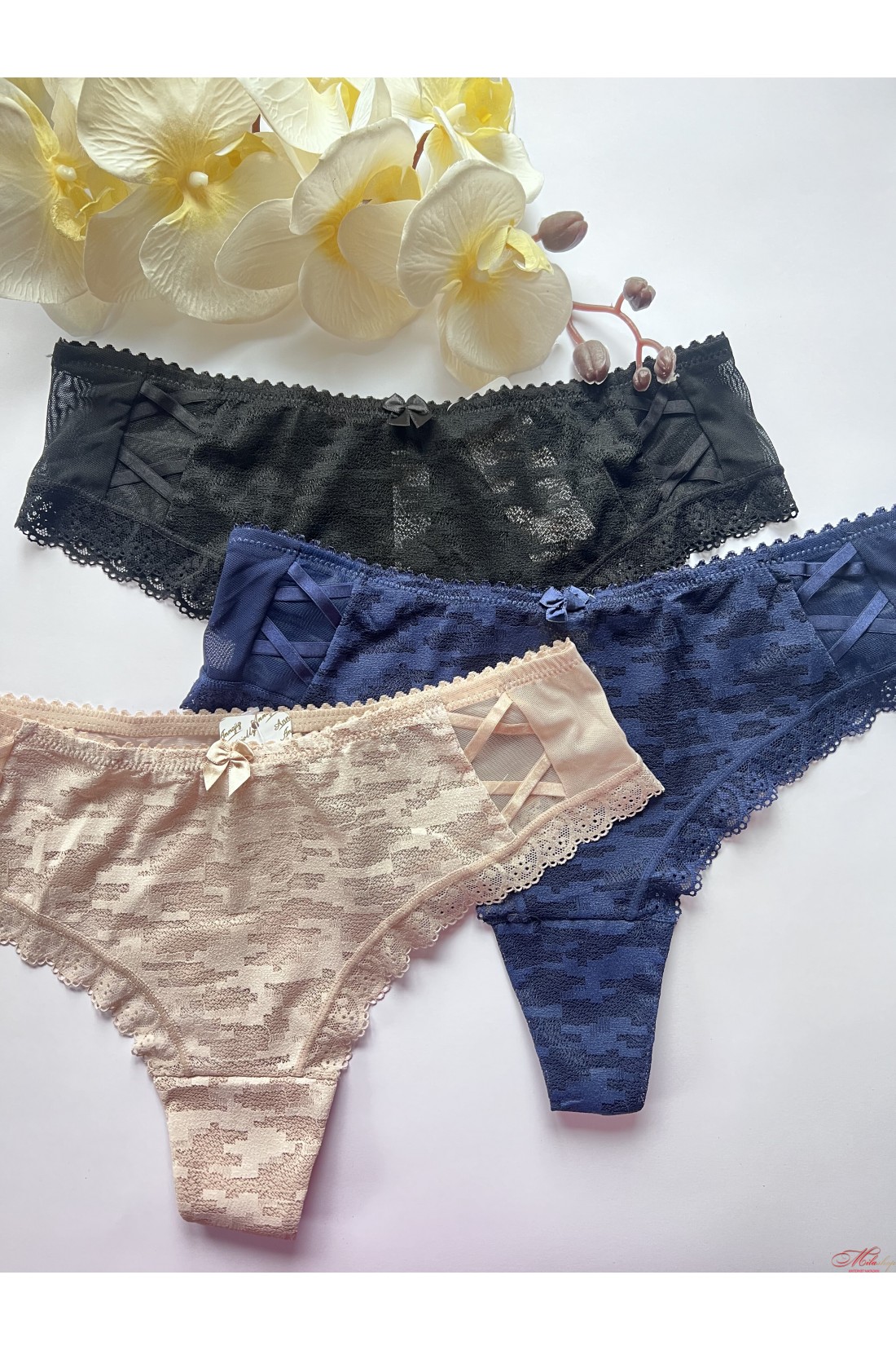 Трусики бразиліана з красивої мікросіточки та мережива. Із середньою лінією талії. Трусики виготовлені з найніжніших матеріалів. Бавовняна ластівка.
