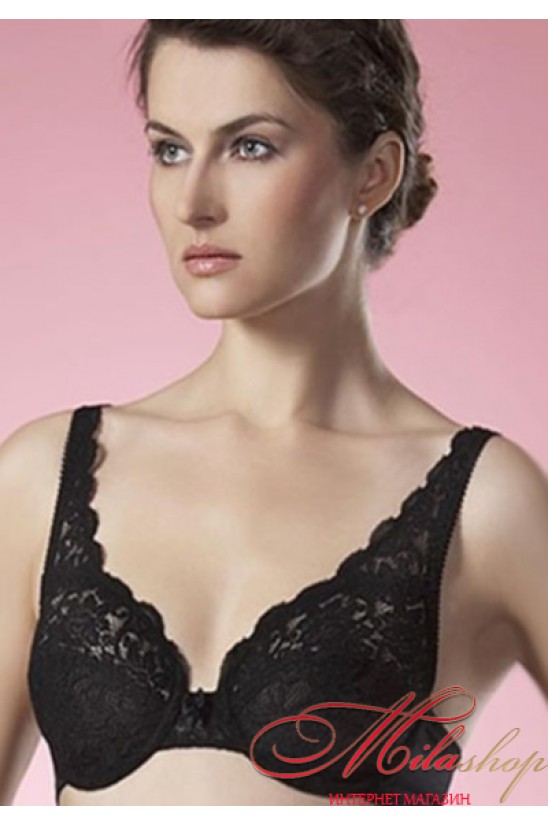 Бюстгальтер из эластичного полотна, эластичного кружевного полотна и эластичного кружева, на каркасах. Нижняя деталь чашек на подкладке.
