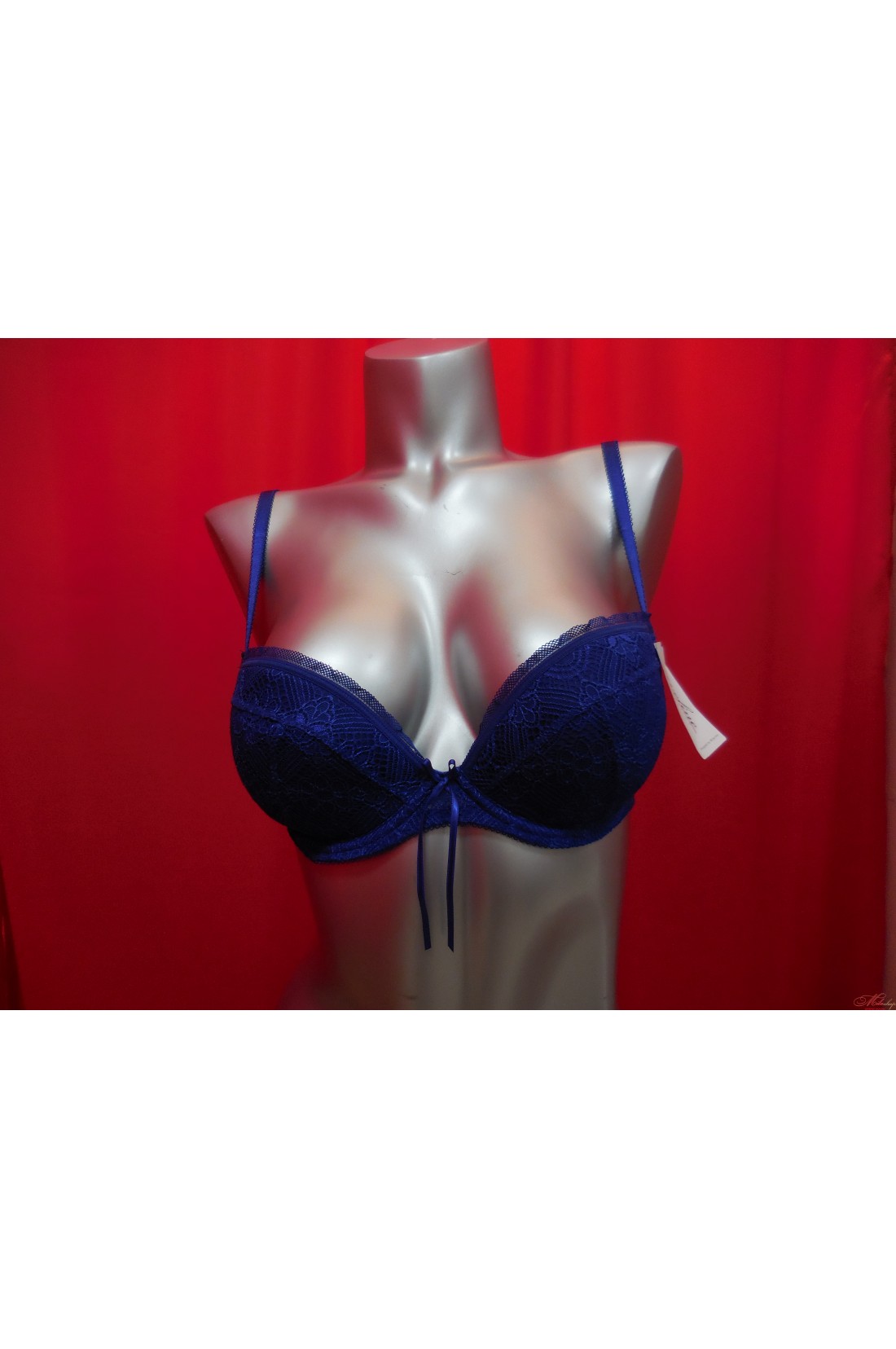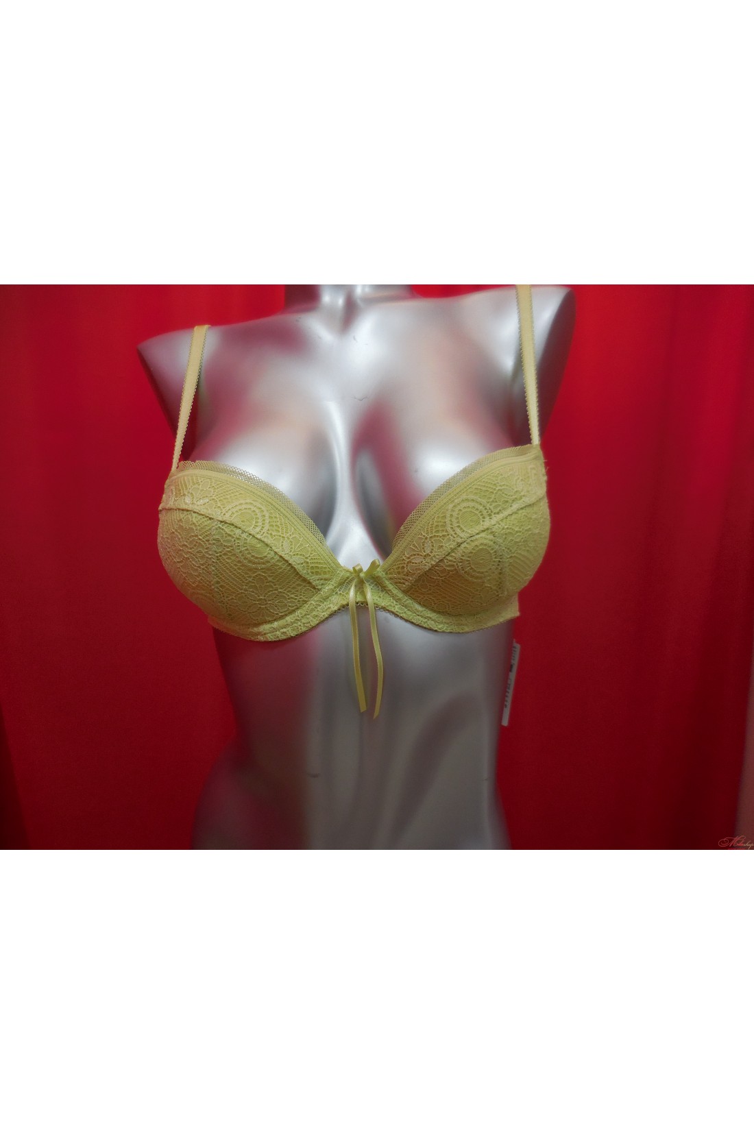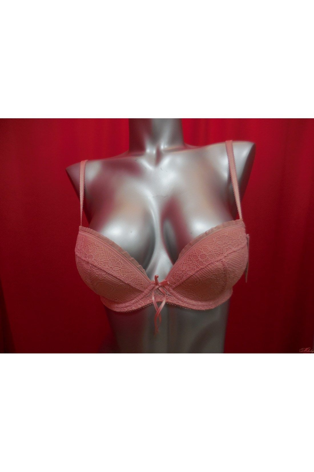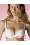 Бюстгальтер пуш-ап из эластичного кружевного полотна. На каркасах. Чашки на дубляже с хлопком, с объемными вкладышами. Отделка - узкая декоративная вязаная тесьма в виде рюши и бантик.