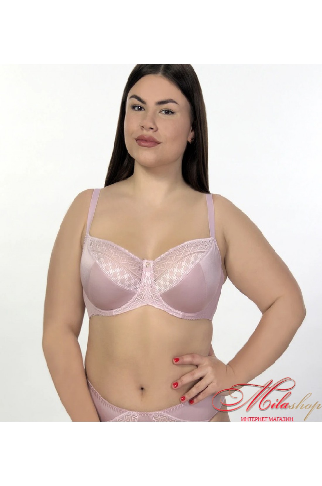 Бюстгальтер на каркасах оздоблений мереживом з рівним краєм. Нижні деталі чашок дубльовані тонким поролоном і 100% бавовною зсередини. Дизайн чашечок надійно підтримує бюст та придає йому округлої форми. Мереживо ніжно огортає зону декольте та формує витончений силует. Спинка з еластичної тканини з невеликим відблиском забезпечує ідеальну фіксацію завдяки гнучким вертикальним пластинам, що оздоблена м’якою тканиною. Застібка ззаду на 2 та на 3 ряди гачків відповідно до розміру бюста. Бретелі регульовані та передбачають 2 ширини в залежності від розміру – 1,5см та 2 см.