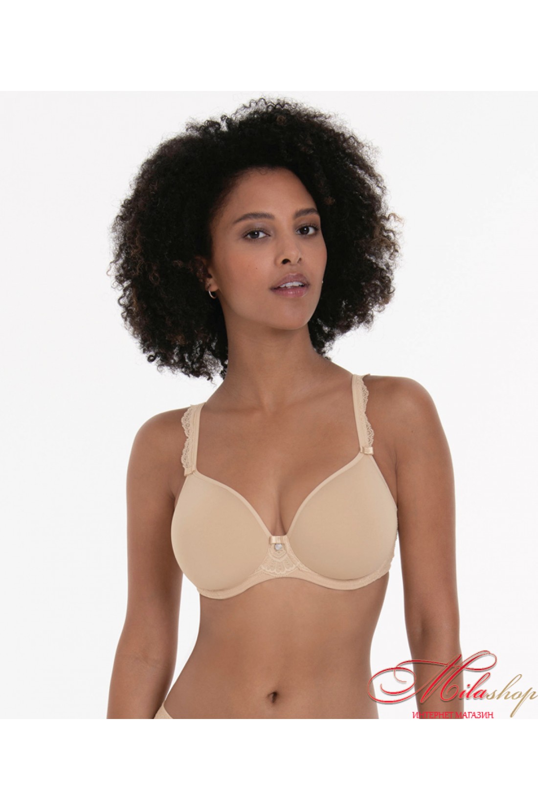 Входить до серії Selma. Щільна чашечка, що дихає із матеріалу Spacer. Модель на кісточці, чашка гладка округлої форми. Бретель прикрашена мереживом. Максимально комфортна модель із щільною чашкою, що пропускає повітря.