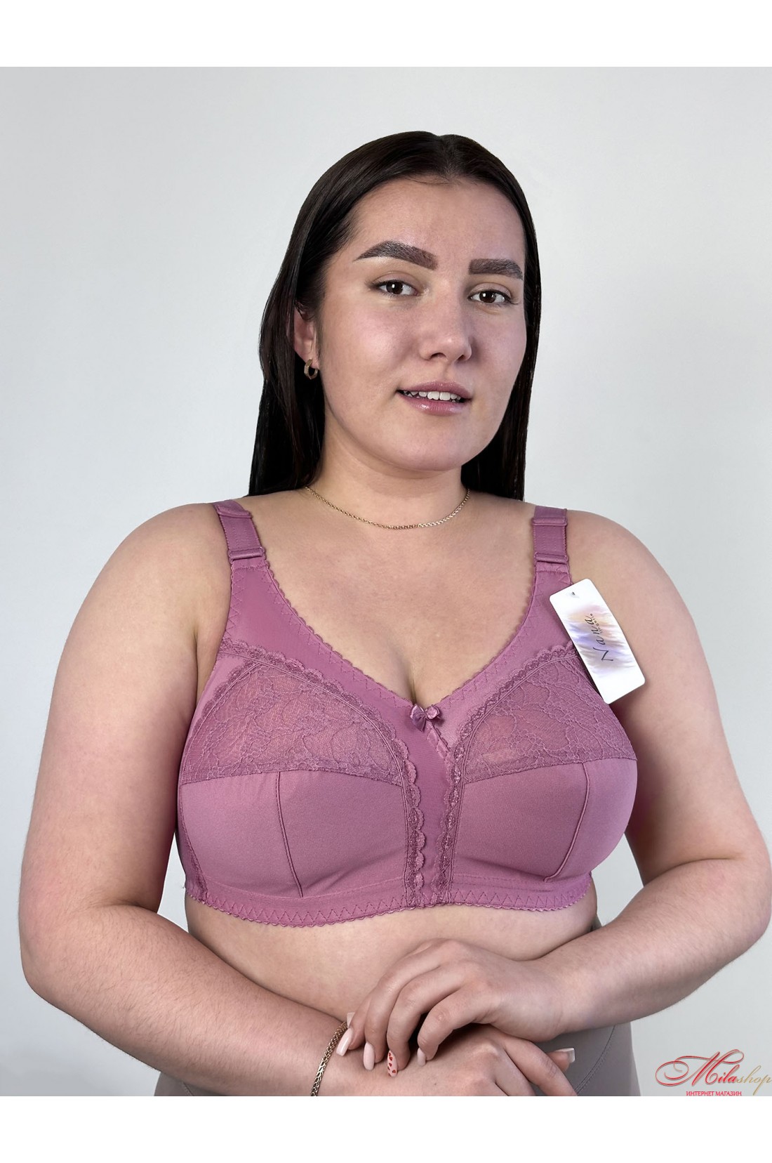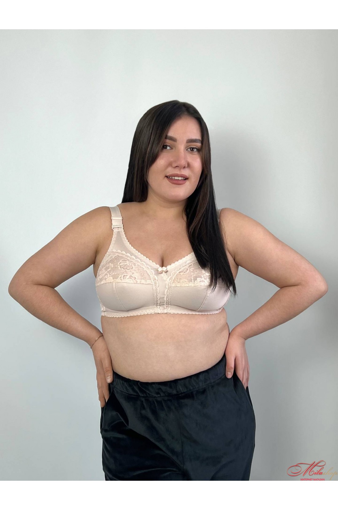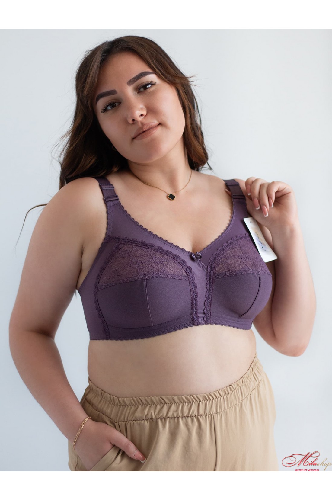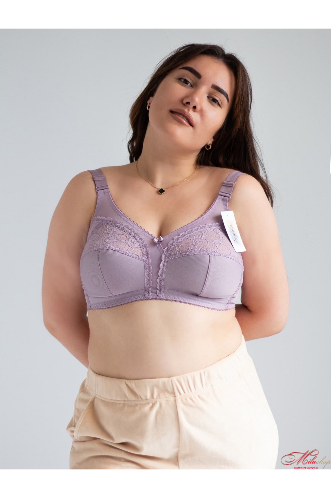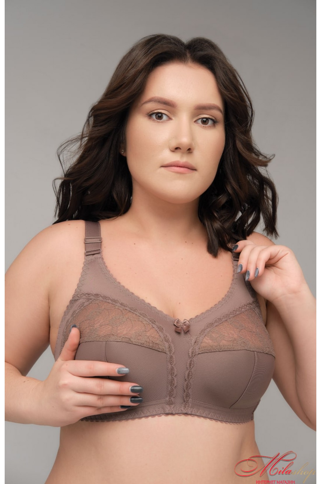 Прекрасний бюстгальтер з м'якими чашками без кісточок. Бюстгальтер для середніх та великих грудей. Модель забезпечує хорошу підтримку грудей, зручна для щоденного носіння, рівномірно розподіляє навантаження на хребет. Розвантажує плечі, рахунок широкого підгрудного пояса. Виготовлений з еластичного трикотажного полотна та мережива.