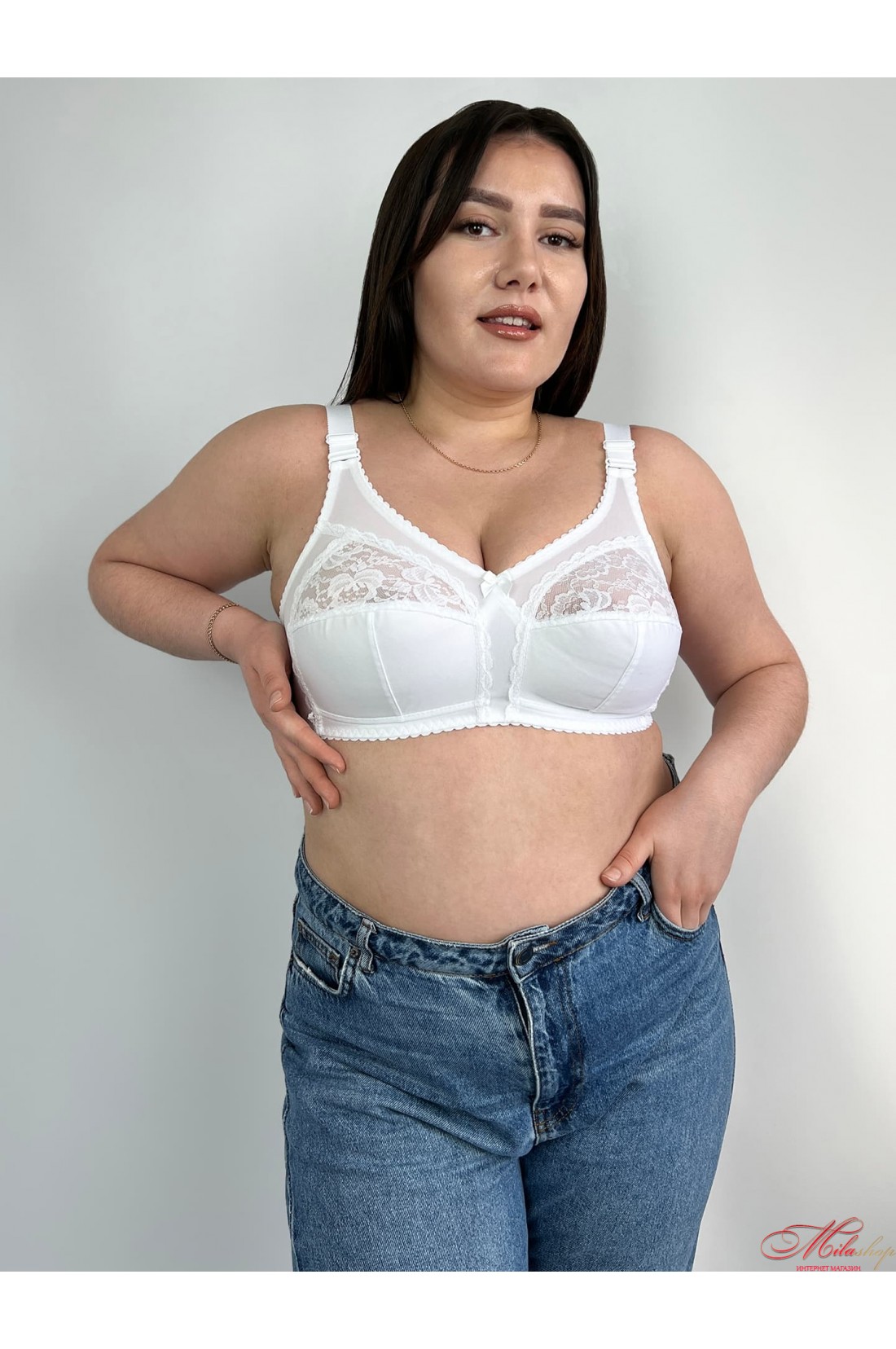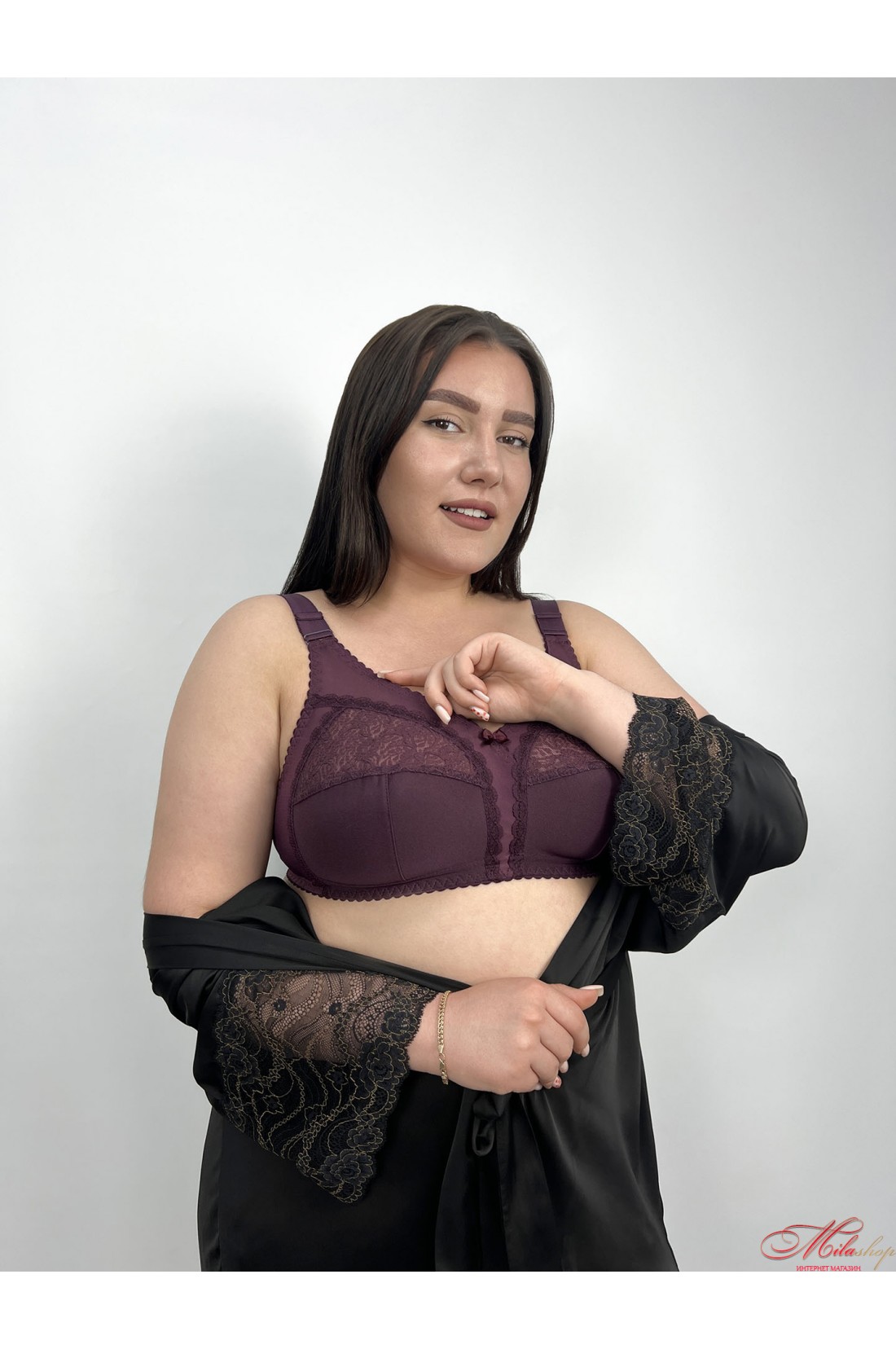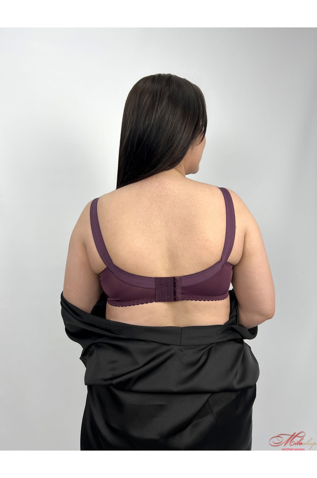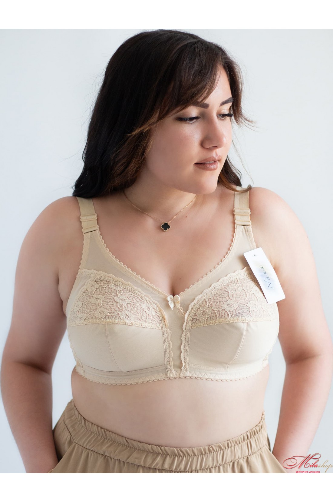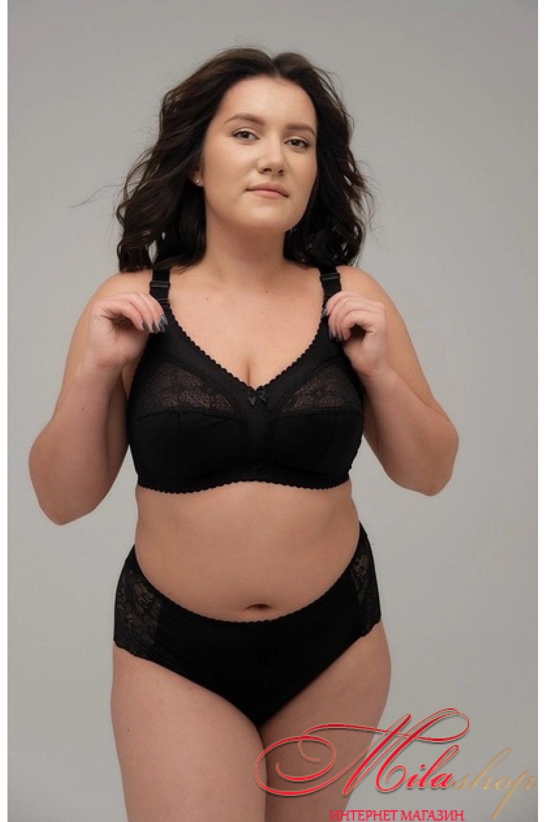 Прекрасний бюстгальтер з м'якими чашками без кісточок. Бюстгальтер для середніх та великих грудей. Модель забезпечує хорошу підтримку грудей, зручна для щоденного носіння, рівномірно розподіляє навантаження на хребет. Розвантажує плечі, рахунок широкого підгрудного пояса. Виготовлений з еластичного трикотажного полотна та мережива.