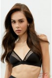 Бралет із вставкою з делікатної сітки. М'які трикутні чашки без кісточок, які підкреслюють природну форму грудей. Бретелі не відстібаються, регулюються по довжині, декоративна спинка із застібкою: 2 гачки на 3 позиції.