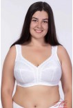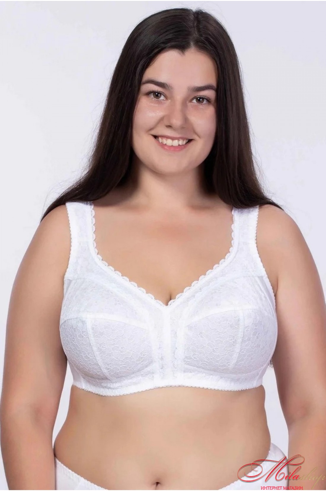 Бюстгальтер з м'якими чашками без каркасів з еластичного, трикотажного та мереживного полотна. Розширені комфортні бретелі з тонким поролоном, чашки та ластівка дубльовані бавовняним полотном. Оздоблення - вузьке нееластичні мереживо. Розширена розмірна пропозиція.