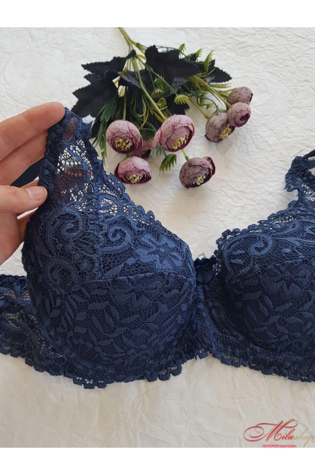 Чудовий бюстгальтер Lanny Mode 62004 з бічною підтримкою у синьому кольорі. На кісточках, пояс - мереживний, усередині чашок бавовняне дубльоване полотно. Не знімні бретелі, регулюються по довжині.