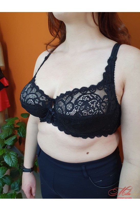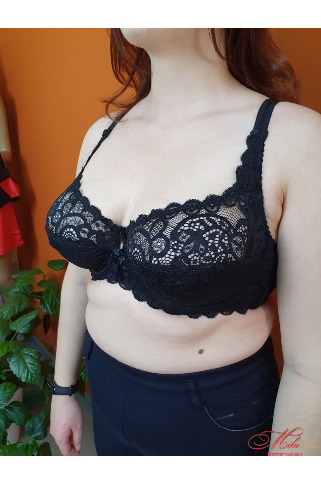 Бюстгальтер із мереживною чашкою на кісточках, всередині бавовняна підкладка. Спинка з еластичного полотна, застібка на два гачки у трьох положеннях. Шикарна модель для розкішних форм!