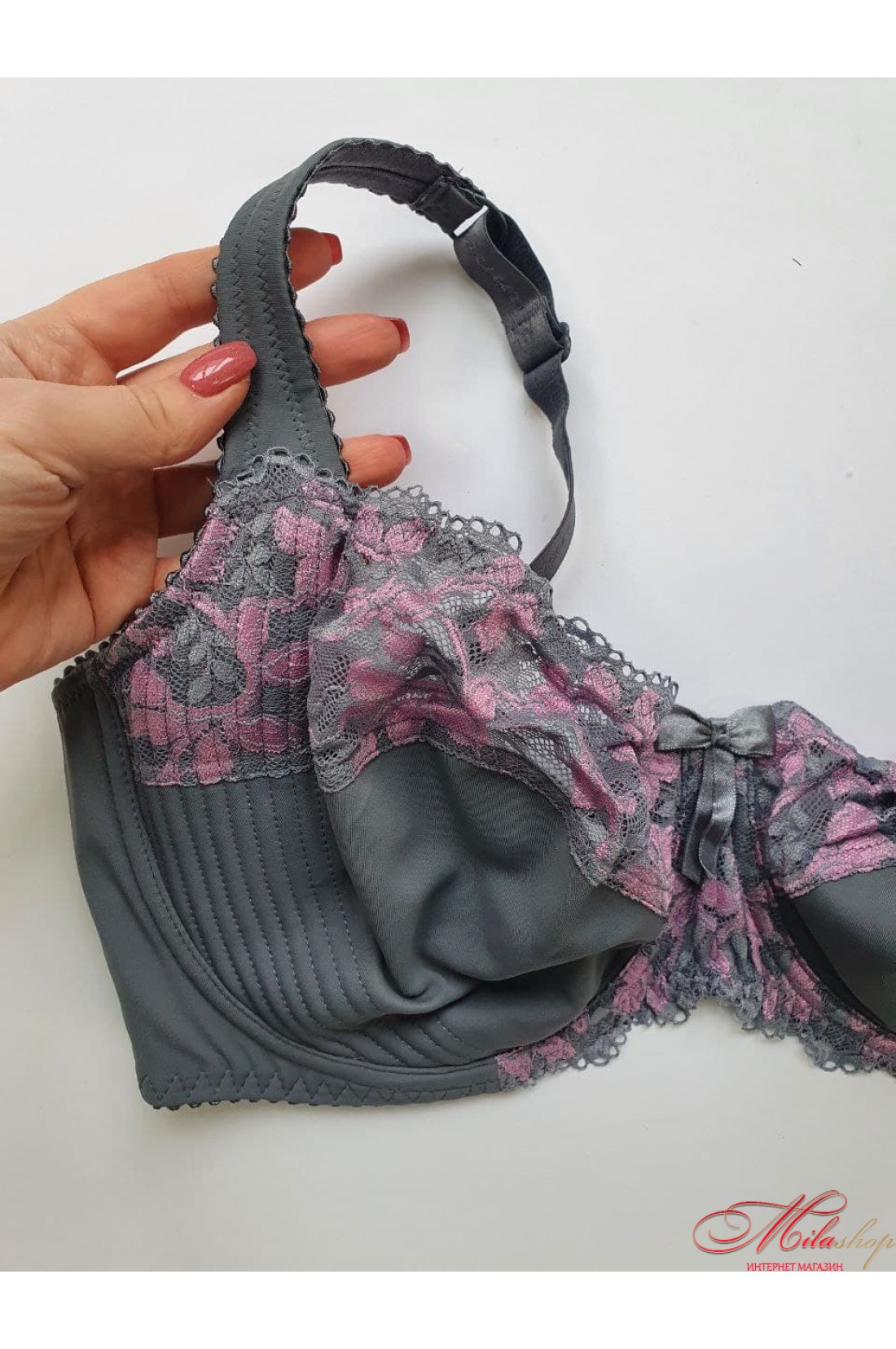 Бюстгальтер Lanny Mode 11568 на G (7) розмір грудей, виконаний з високоміцного мікрофібрового полотна та мережива, бретелька посилена, чашки на кісточках, бічна деталь чашки посилена простроченим бавовняним полотном. Застібка на 3 гачки у трьох положеннях. Дана модель надійно фіксує великі груди і надає їй красиву круглу форму.