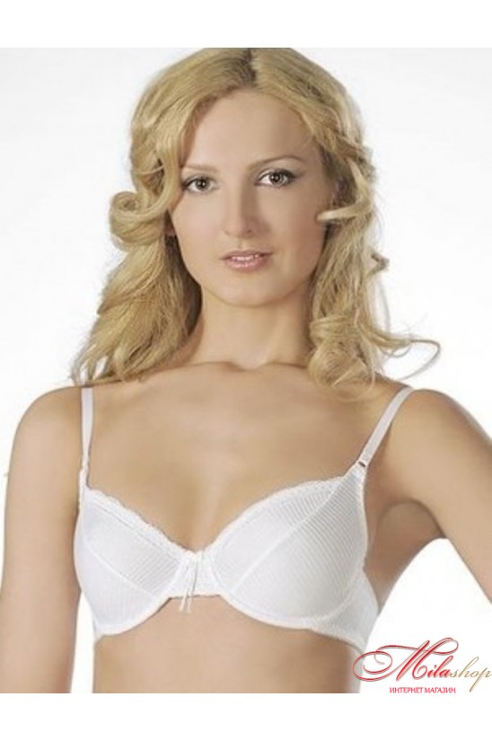 Бюстгальтер из эластичного трикотажного полотна с полосатой фактурой. На каркасах. Нижняя деталь чашек на подкладке из эластичного сетчатого полотна. Отделка- узкое эластичное кружево и бантик.