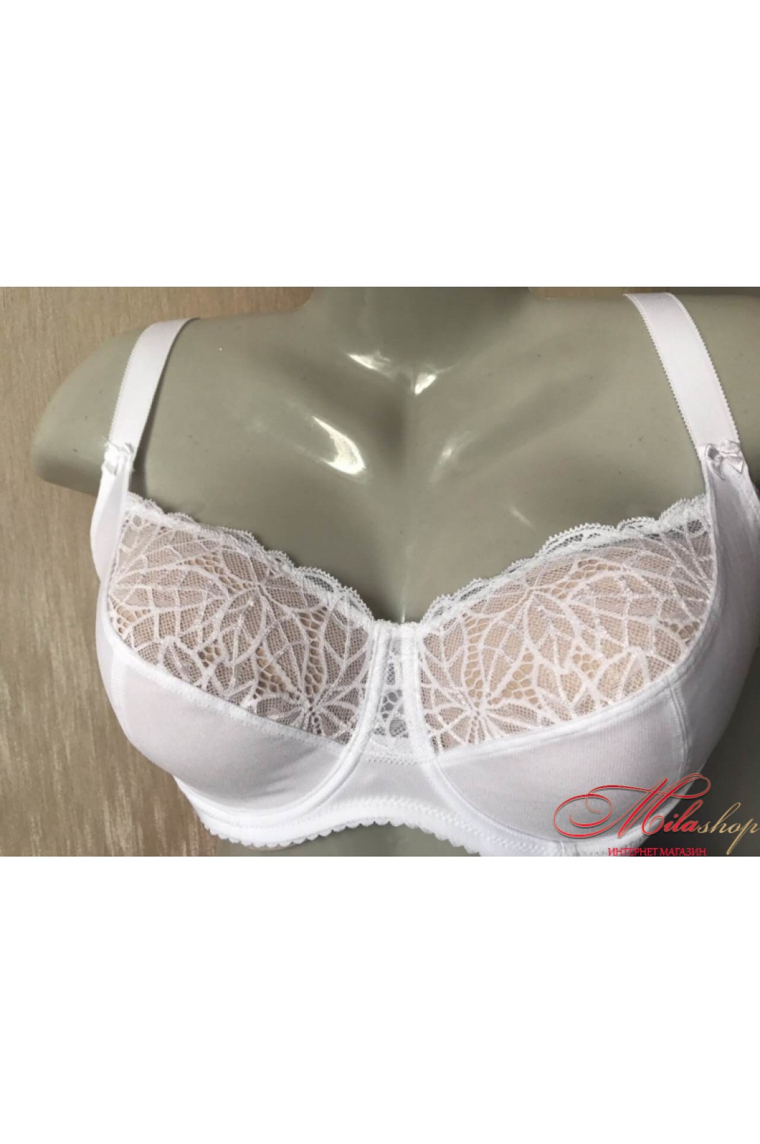 Бюстгальтер из трикотажного полотна и эластичного кружева. На каркасах, с мягкой чашкой.