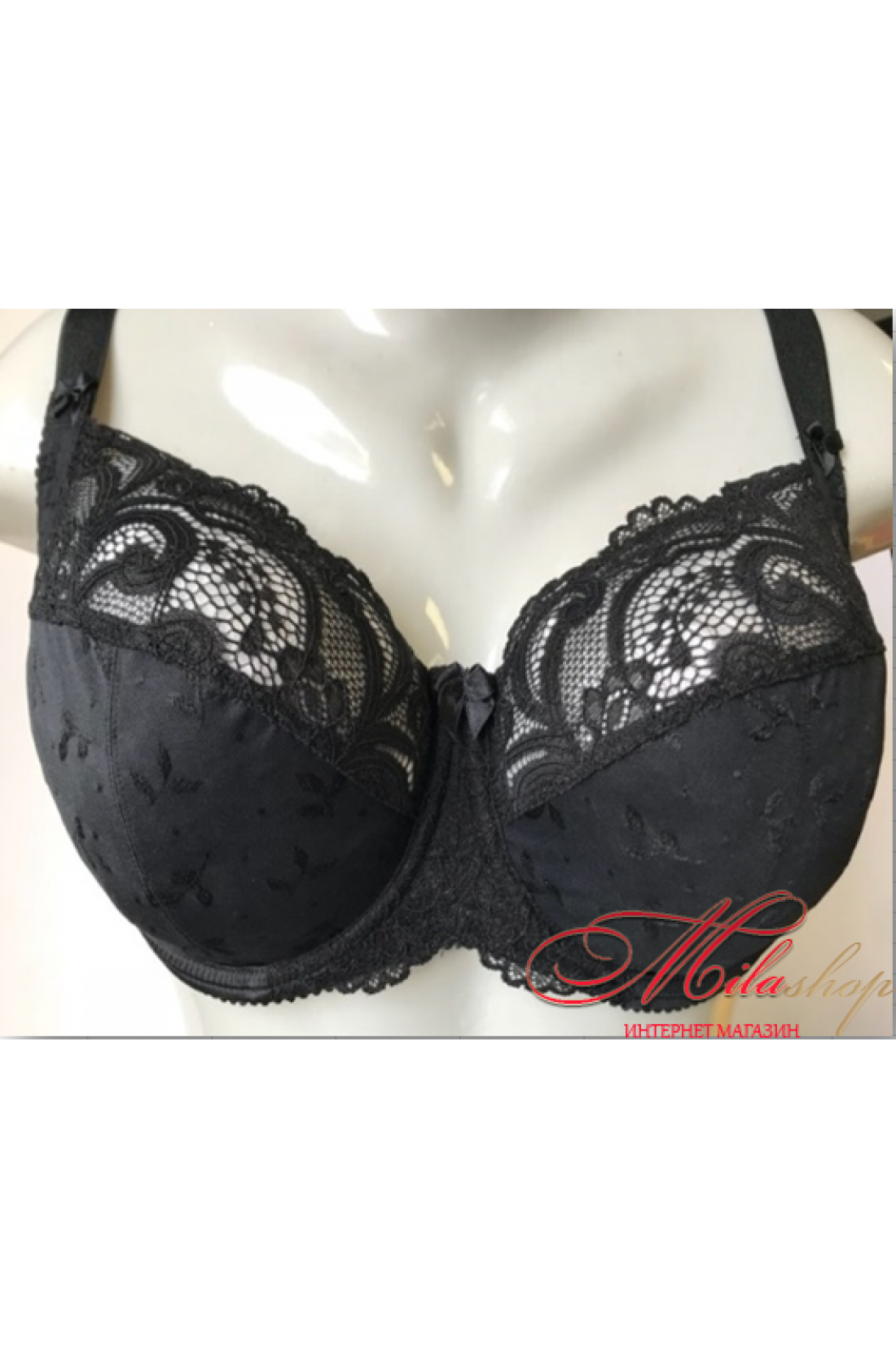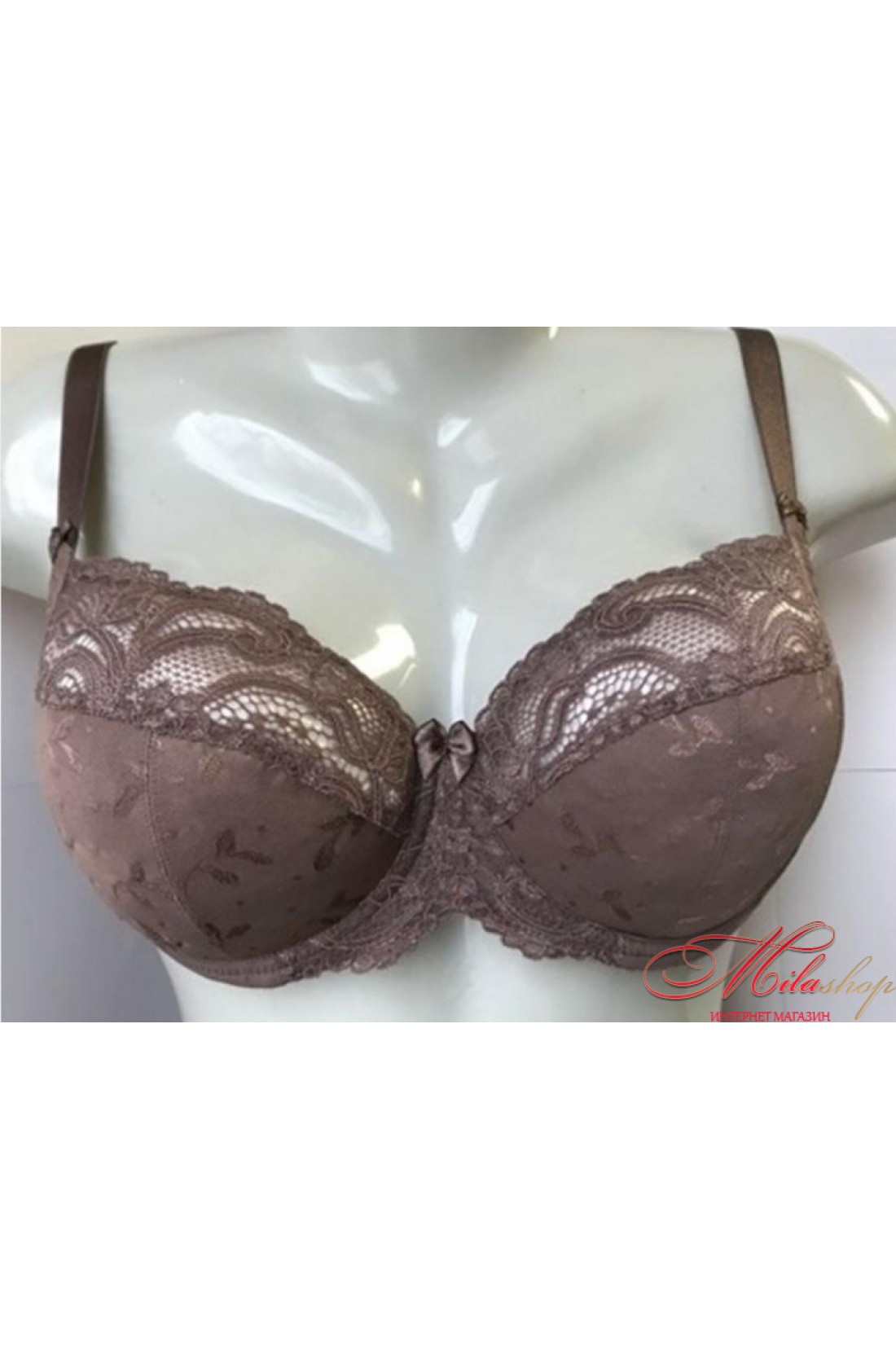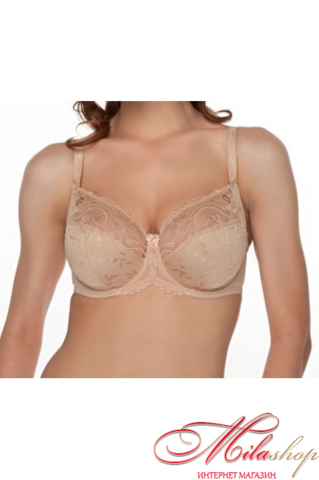 Бюстгальтер із трикотажного жакардового полотна, на каркасах. М'які чашки з бічною коригуючою деталлю. Дуже красивий та зручний з мереживом по верху чашки.