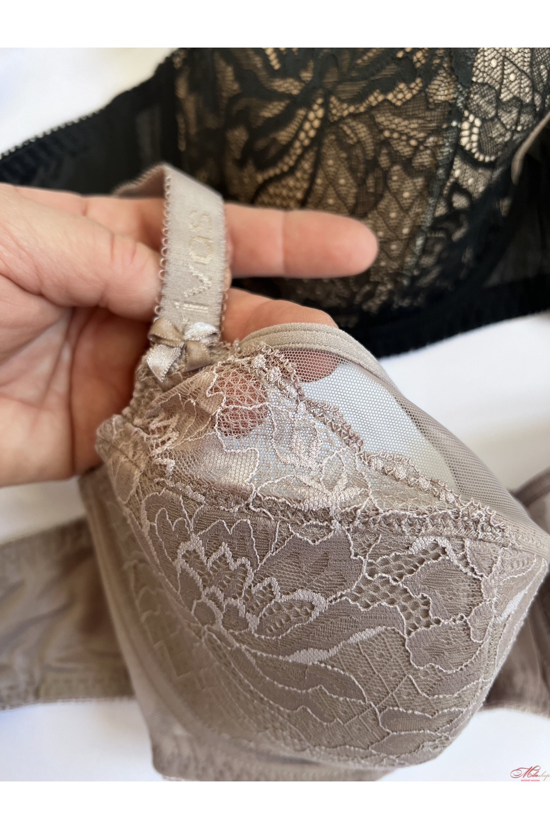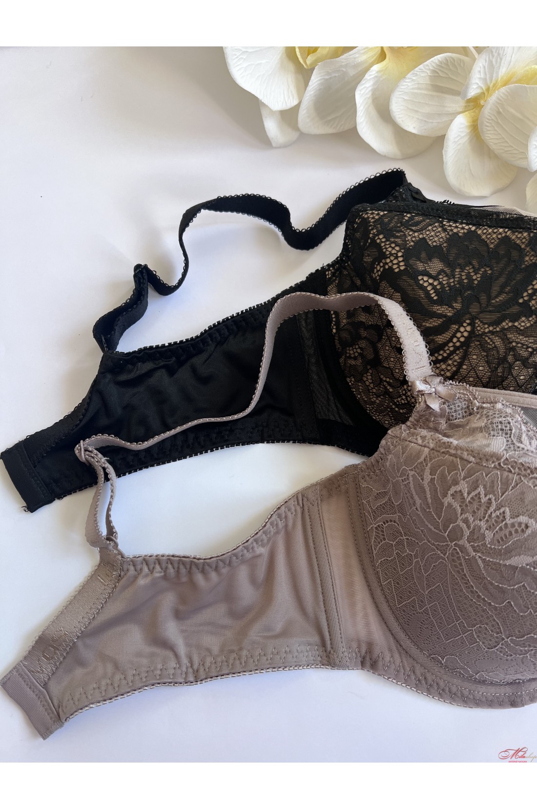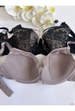 Бюстгальтер з тонкими поролоновими чашками, з кісточками. Прикрашений красивим мереживом та мікросіточкою. Бретелі незнімні, регулюються по довжині. Зсередини чашка з бавовняного полотна.