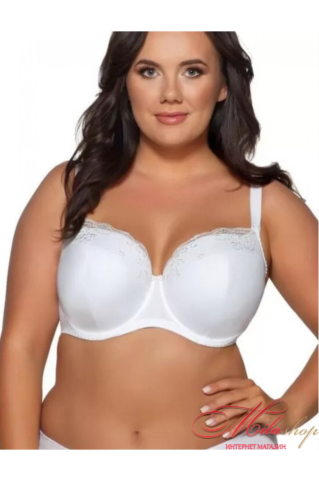 Ущільнений бюстгальтер для пишних грудей від польського виробника AVA. Модель виконана з гладкої мікрофібри. Зверху чашки бюстгальтера прикрашені тонкою прозорою сіткою з ніжною вишивкою. Нижня частина чашки виконана з гладкого трикотажу. Зсередини чашки продубльовані бавовняним полотном. Чашки бюстгальтера на кісточках і ущільнені спеціальної нанопеной. Матеріал прослужить довго і не буде викликати дискомфорту при носінні. Пояс пошитий з подвійного шару сіточки, без бічної кісточкою в поясі. Бюстгальтер застібається на 2-3 гачка і має 3 варіанти обсягу. Пояс надійно підтримує великі і важкі груди. Незнімні бретелі з металевим кільком кріплення регулюються по довжині.