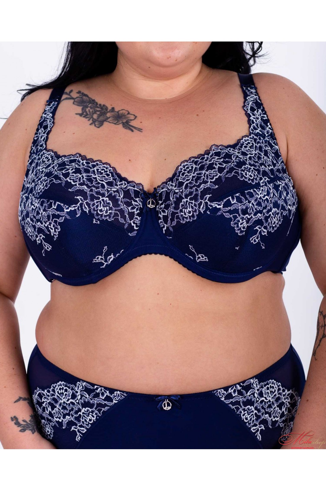 Бюстгальтер напівпоролон з мереживом Lanny Mode 11679 синій з білим