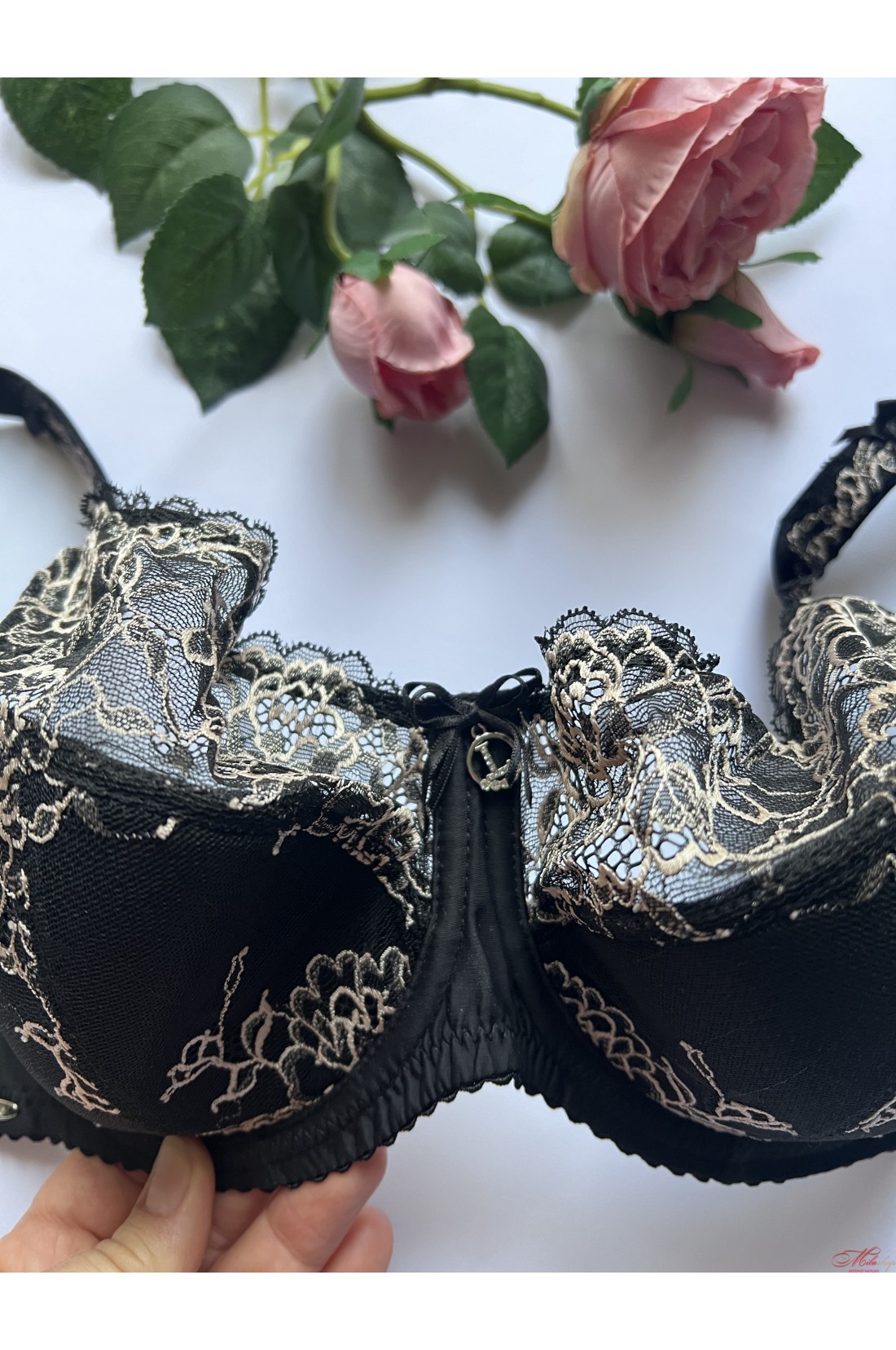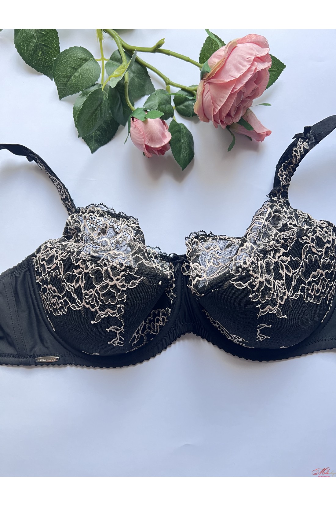 Бюстгальтер напівпоролон з мереживом Lanny Mode 11679 чорний з бежевим
