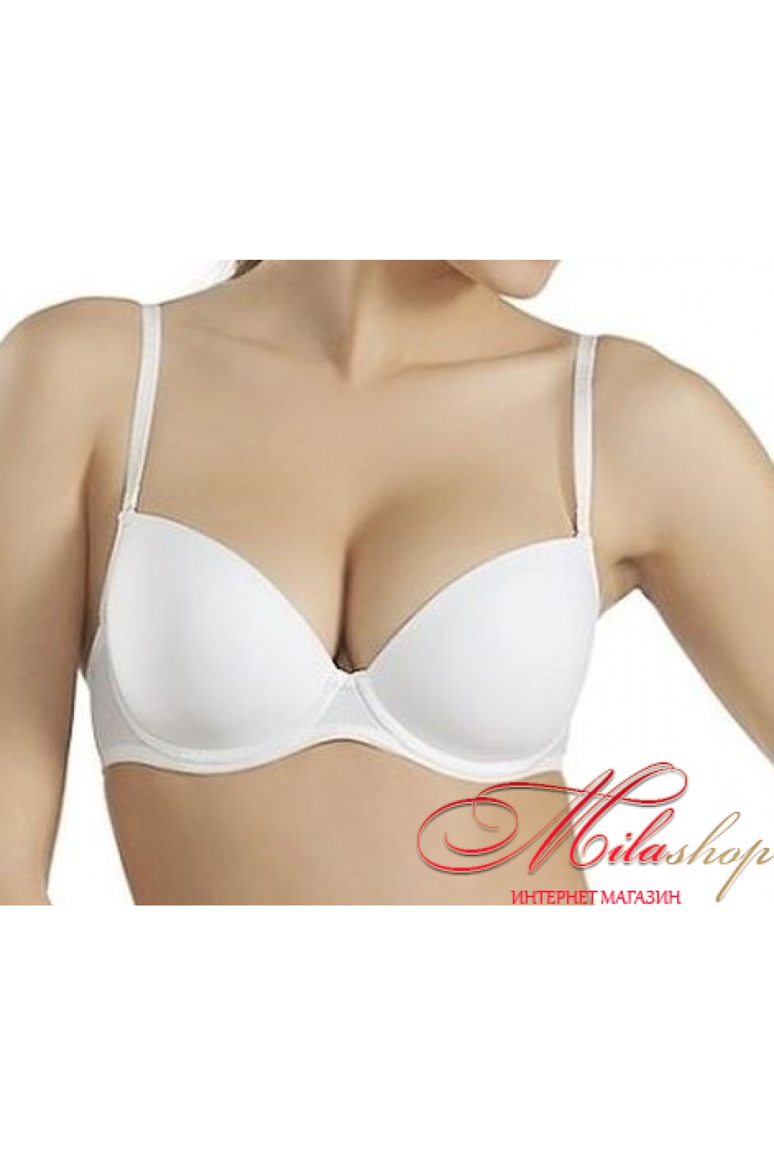 Бюстгальтер із еластичного трикотажного полотна, на каркасах. Формовані чашки зі знімними бретелями.