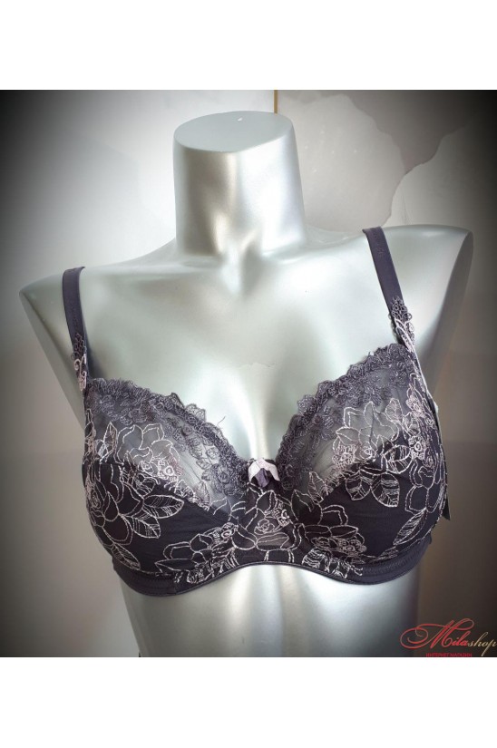 Бюстгальтер с мягкими чашками, не съемными бретелями. Чашки бюстгальтера имеют боковую вставку. Украшен вышивкой