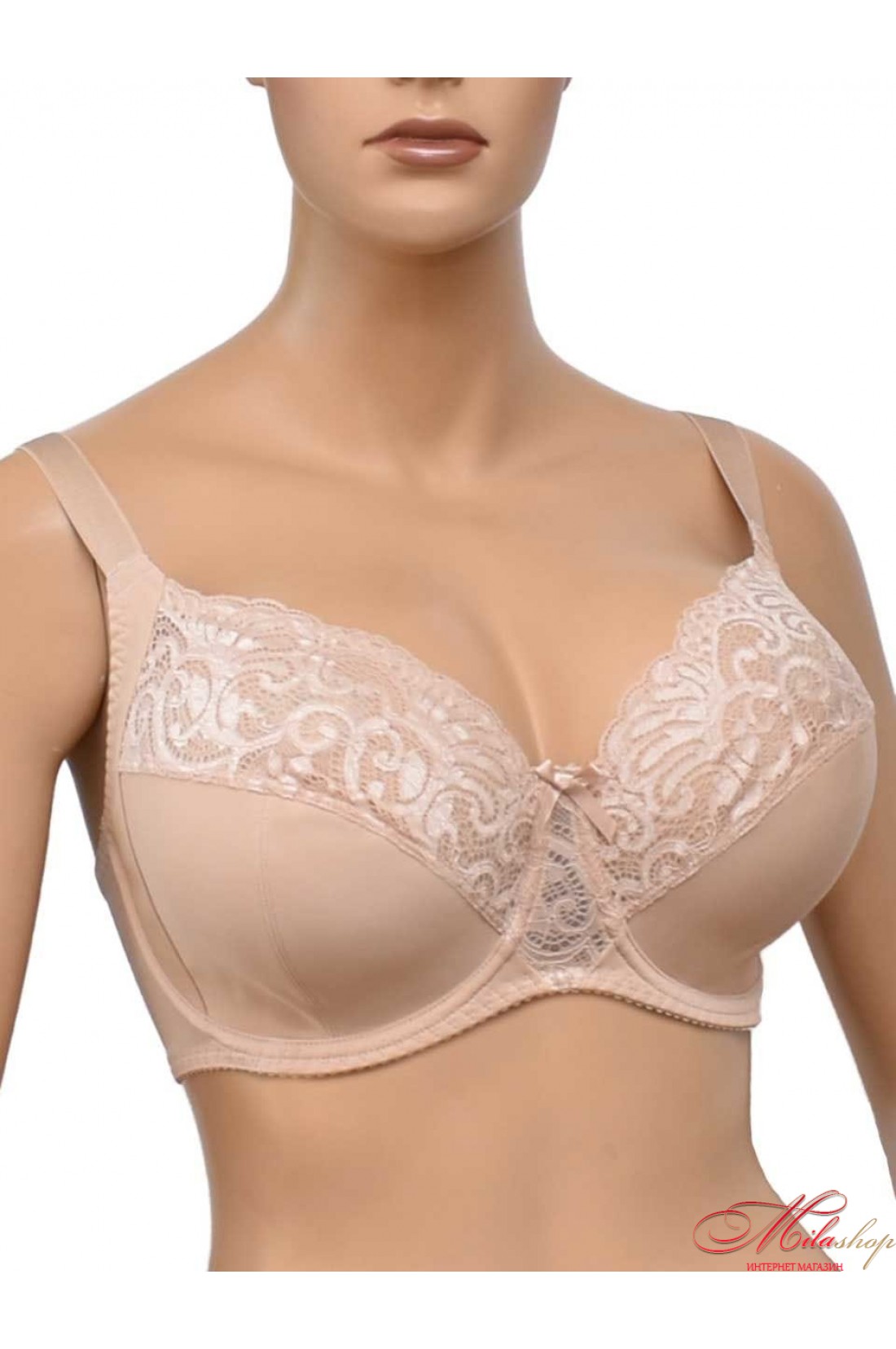 Бюстгальтер з посиленою бічною підтримкою та Т-подібним швом. Виконаний з еластичного полотна та трикотажного полотна, на каркасах. М'які чашки з подвійним членуванням, внутрішня частина чашок виготовлена з бавовни. Бічна деталь, що коригує, допомагає добре сформувати форму грудей, "зібравши" її до центру.