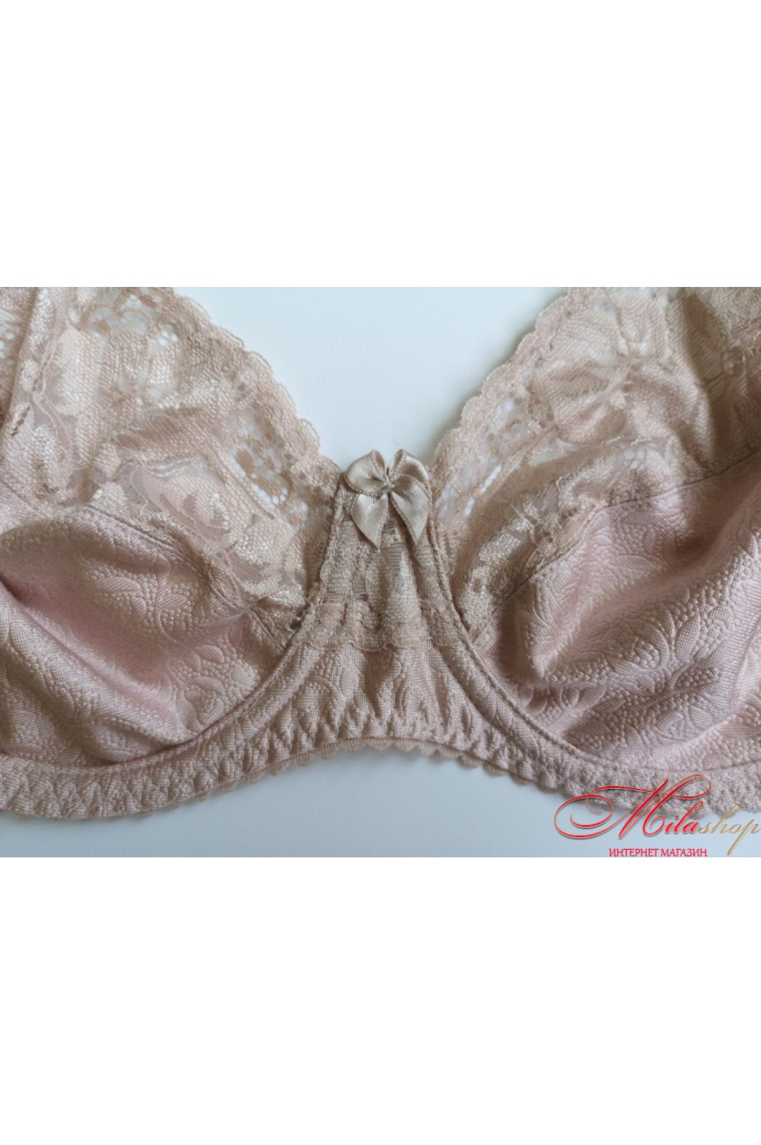 Бюстгальтер з еластичного полотна та трикотажного полотна з тисненим малюнком та нееластичного мережива, на каркасах. Особливість: відстань між чашками, анатомічно правильна посадка. Комфортний, не порушує кровообіг. У маленьких розмірах бретелі вузькі, середніх - середні, великих - широкі.
