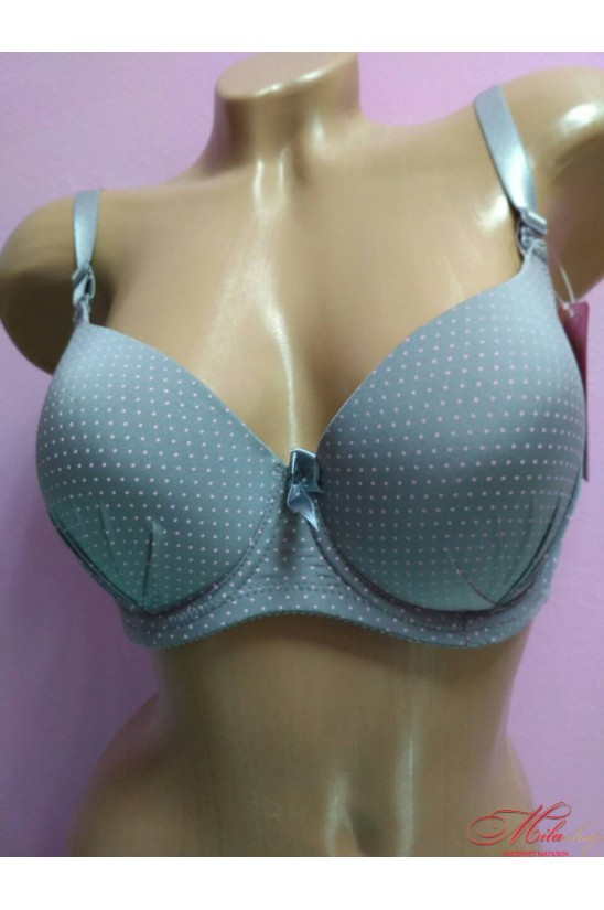 Бюстгальтер производства Польшы с плотной чашкой из элластичного полотна Tuba 718. Красивая расцветка: на благородном сегом фоне розовые озорные горошины. Застежка на два крючка в трех положениях, бретели съемные, регулируемые.