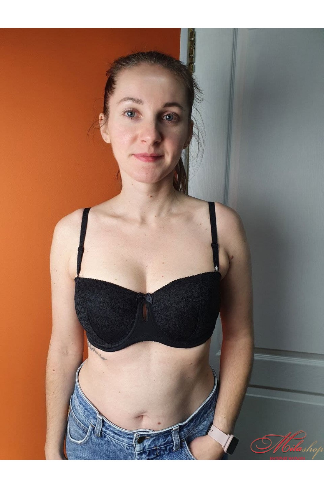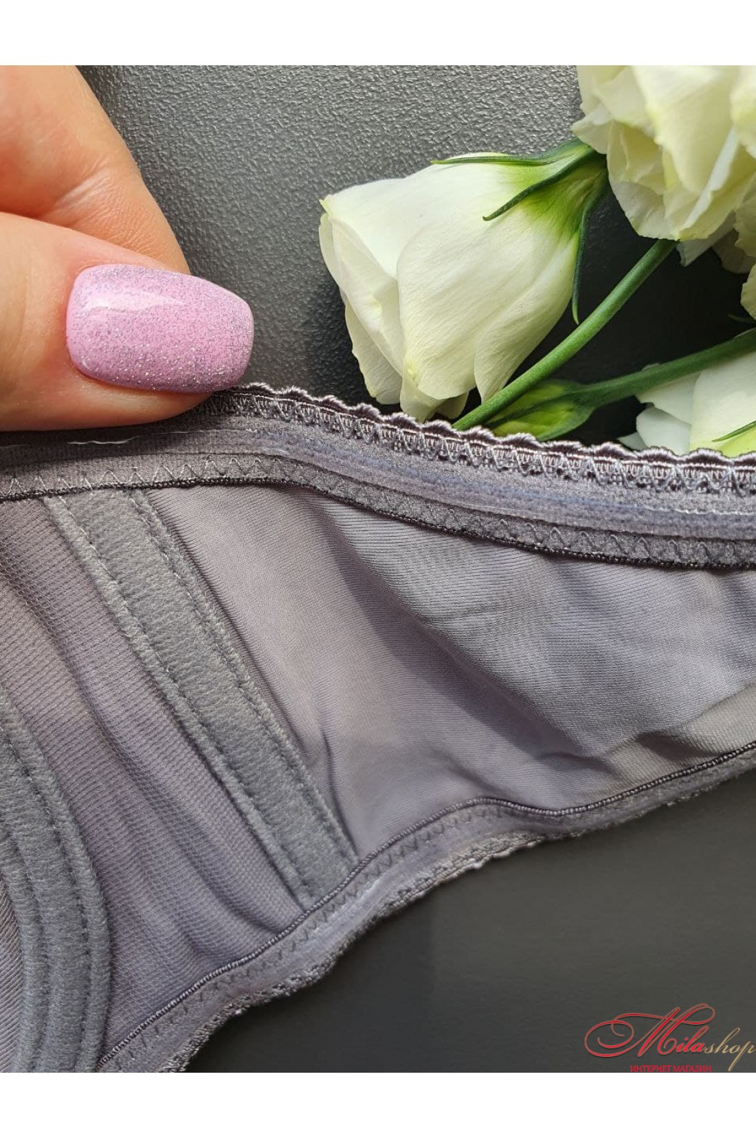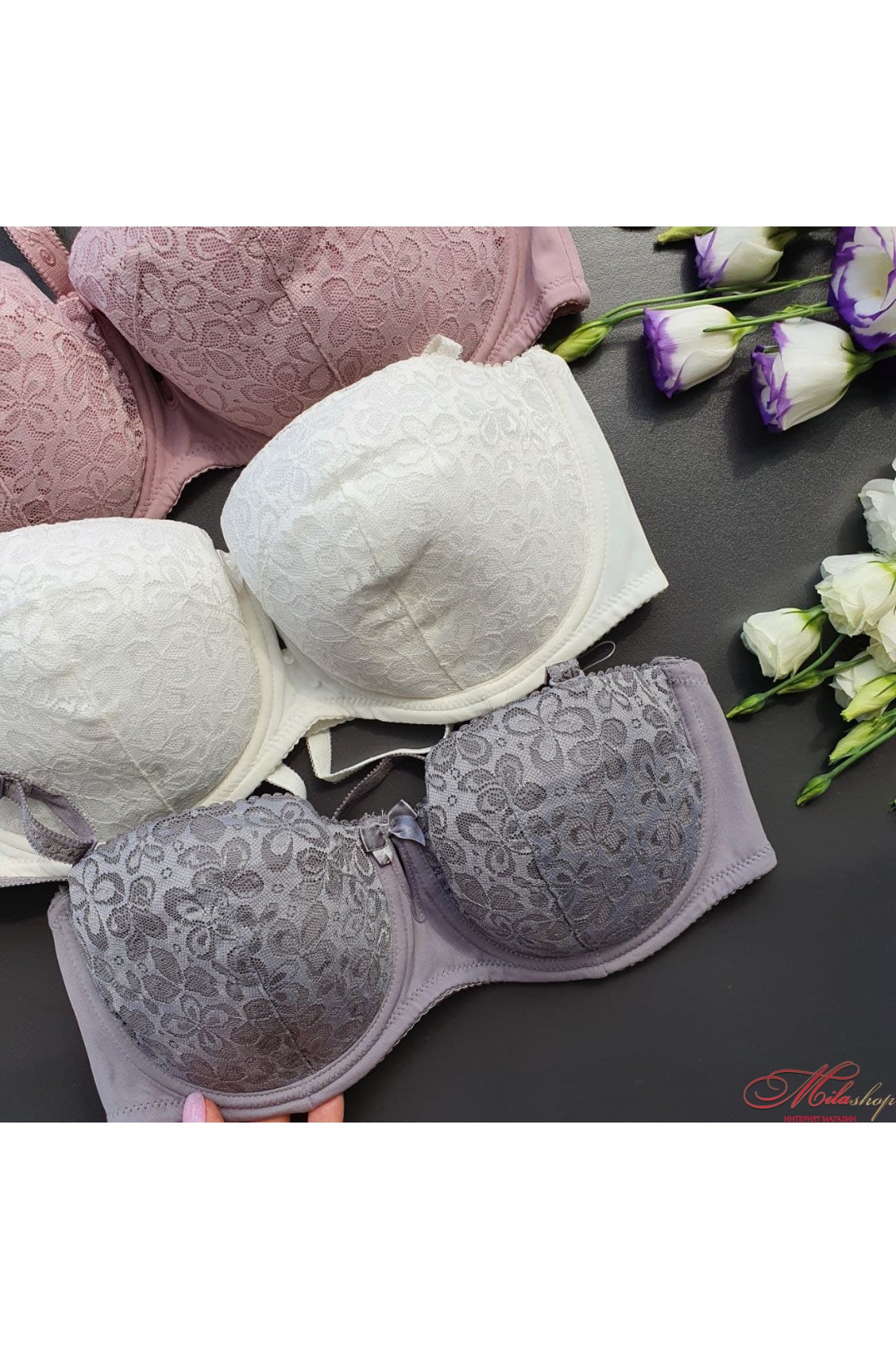 Бюстгальтер з мереживом, що практично не виділяється, анжеліка, поролон, бретелі - знімні, модель з просиликоненим внутрішнім швом (за об'ємом). Повномірна модель.