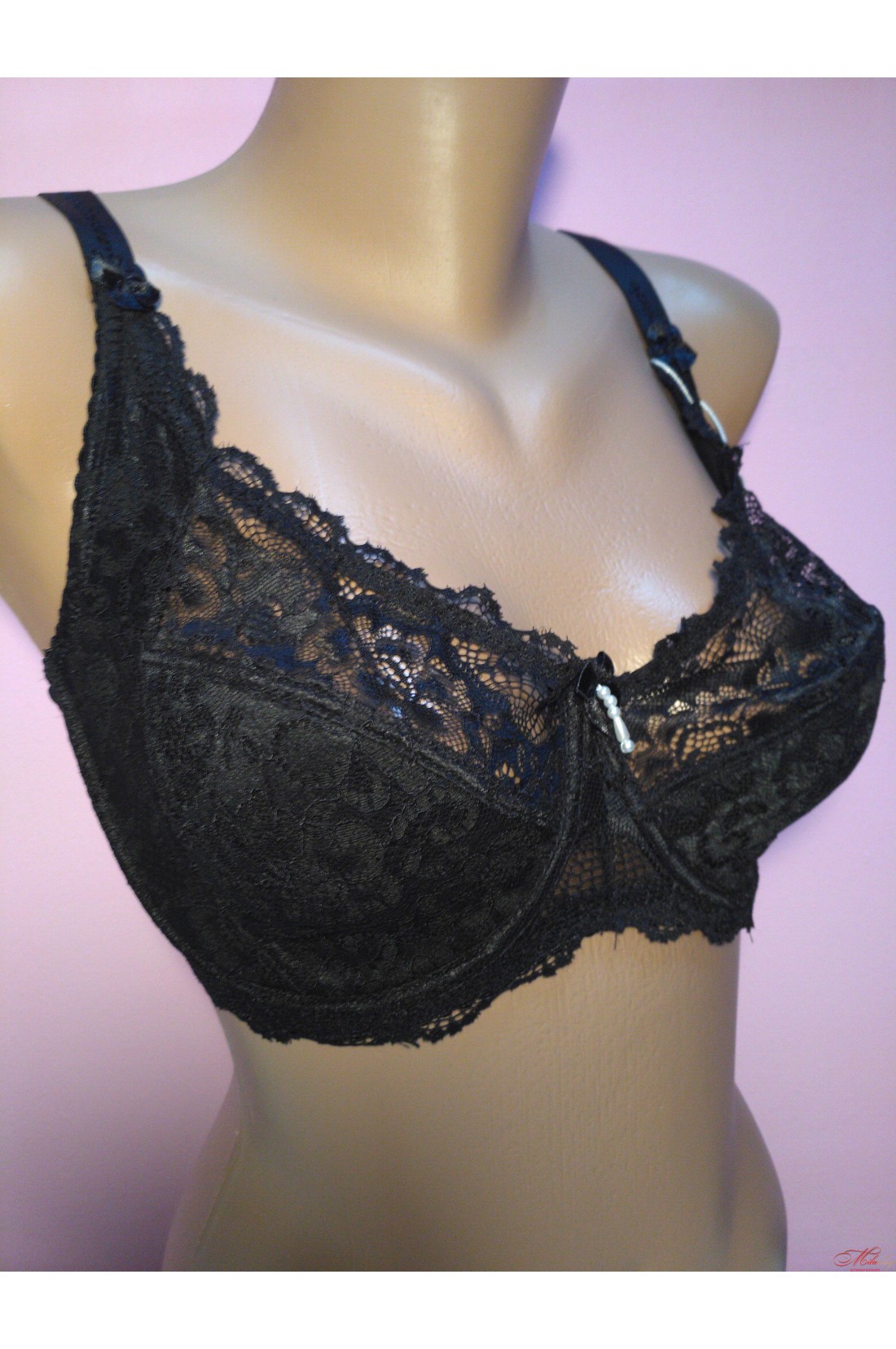 Бюстгальтер із елегантного мережива з посиленими бретелями. Зближує та підтримує груди.
