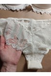 Гарний комплект з бюста спейсера з мереживним поясом та мереживних бразиліан. Бюстгальтер Спейсер - гладкий тонкий бюстгальтер з інноваційного "дихаючого" матеріалу. Пористий склад чашок дозволяє легко пропускати повітря та виводити вологу. Округлює груди, відчувається як «друга шкіра», незнімні бретелі регулюються по довжині. Переваги бюстгальтера SPACER: 1. Суперкомфорт – основна перевага! Чашка легка, практично не відчутна на тілі. 2. Повітропроникність. Бюстгальтер дає можливість шкірі грудей дихати і швидко відводити надлишки вологи. 3. Відмінна посадка, природний силует та ефект «запам'ятовування» форми. 4. Тонка та гладка чашка абсолютно непомітна під одягом. 5. Міцність, зносостійкість та довговічність. Труїки бразиліана з гарного тонкого мережива, красиво підкреслюють форми, непомітні під одягом.