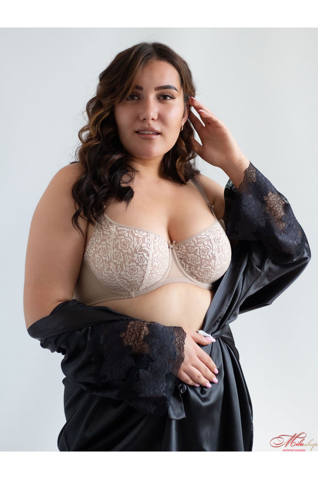 Елегантний мереживний бюстгальтер на каркасах. Чашка виконана з нееластичного полотна з найкрасивішим візерунком. Широка незнімна бретель, регулюється по довжині.