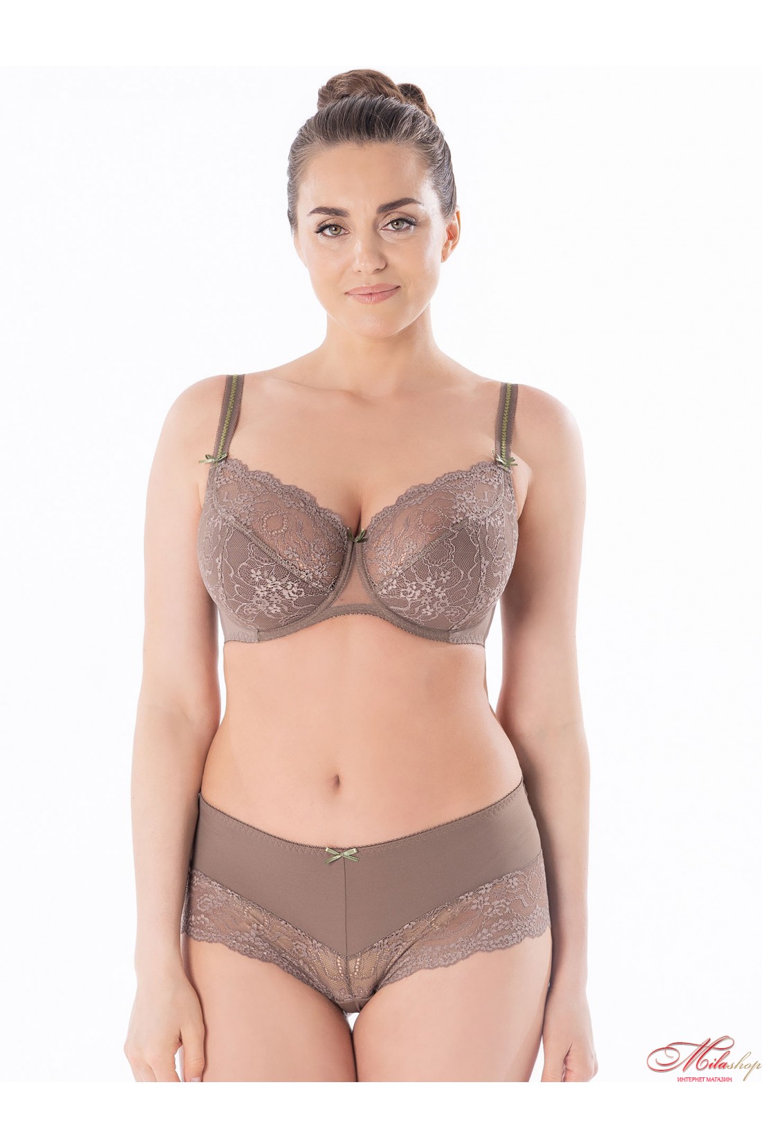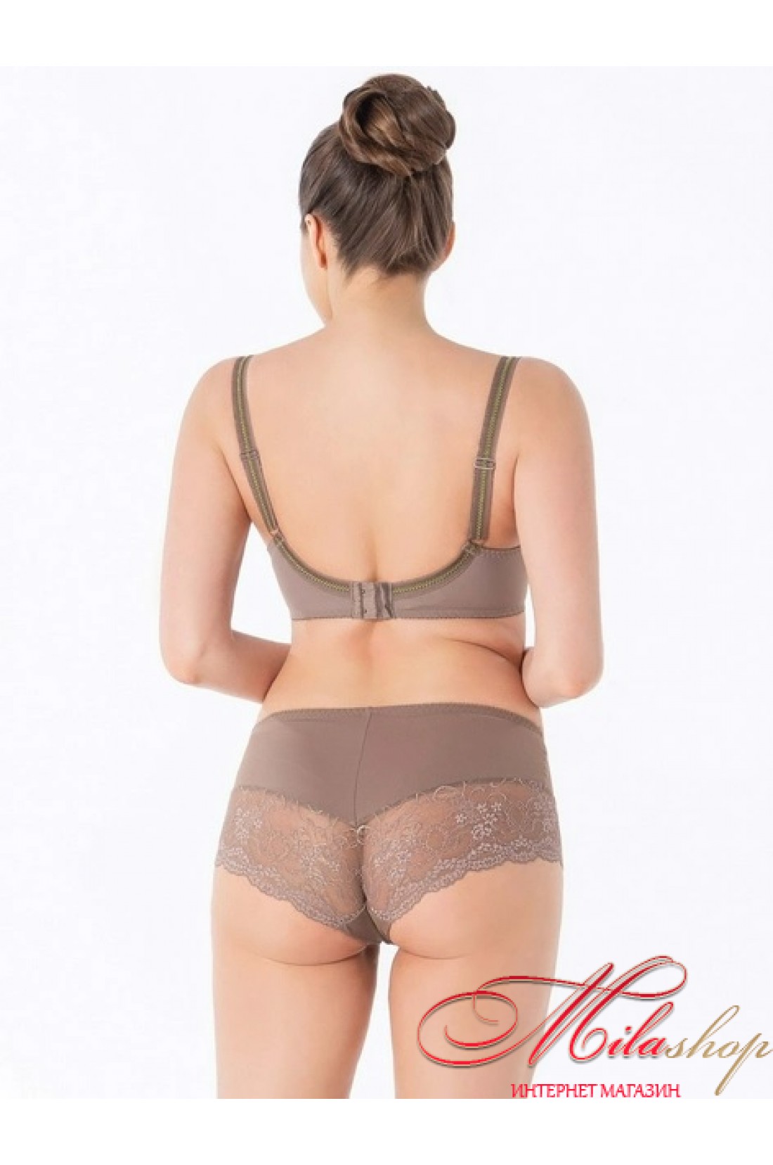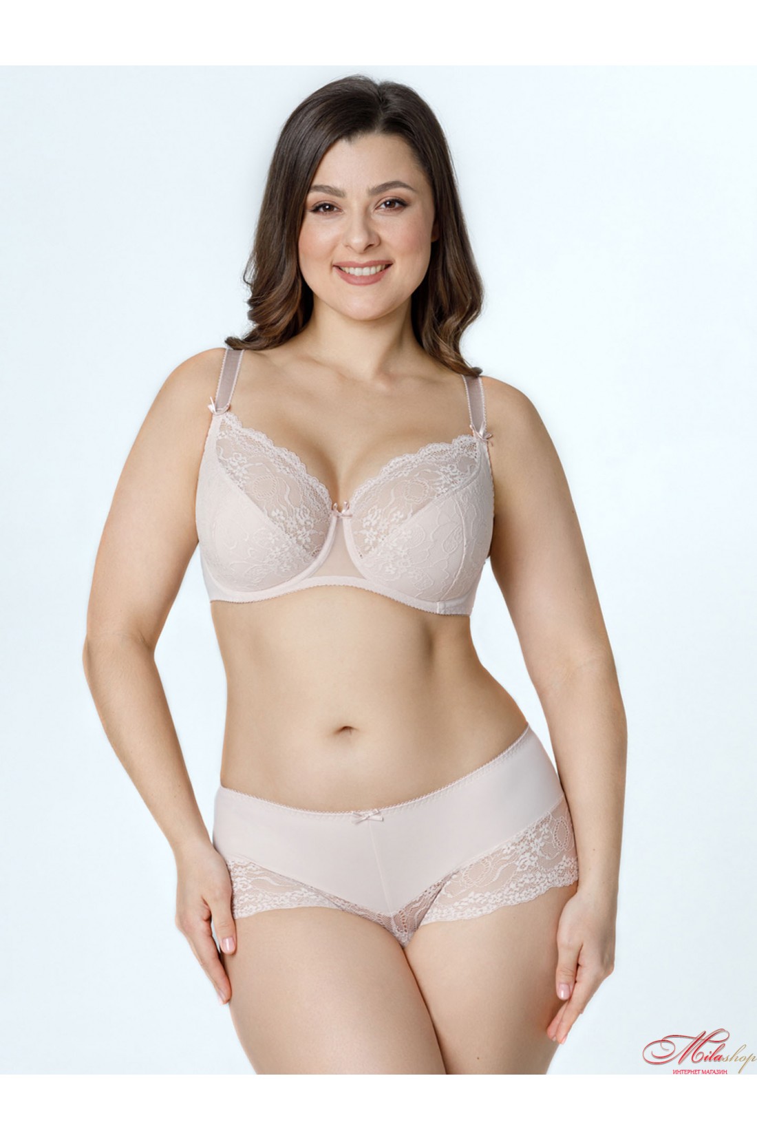Бюстгальтер балконет із чашкою напівпоролон, яка забезпечує надійну підтримку грудей, надаючи округлості формам. Внутрішня частина чашки бюстгальтера виготовлена із бавовняного полотна. Чашки прикрашені гарним мереживом. Кінці металевих каркасів захищені спеціальною капсулою.