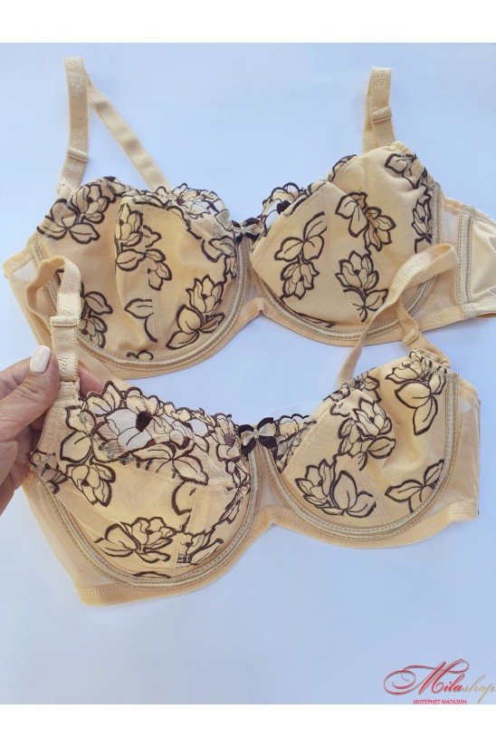 Бюстгальтер із м'якими, комфортними чашками. На кісточках. Знімний бретель. Чашки бюстгальтера декоровані вишивкою
