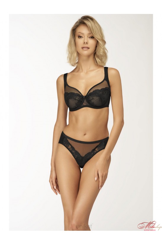 Білизна з колекції Nana Fantasy занурює у світ вишуканої білизни з фантазійними орнаментами, напівпрозорими тканинами та жіночним дизайном. Кожна модель білизни є унікальною і покликана підкреслити всі грані жіночої чарівності. Витончена модель CORA м м'якою чашкою зачарує з першого погляду. Бюстгальтер виконаний з найтоншої напівпрозорої сітки та мережива, яка не дивлячись на легкість, відмінно тримає форму. Повноту і об'єм, який необхідний для спокусливого декольте, створює каркас, з красивою чорною обробкою. Невеликий вертикальний шов забезпечує підтримку центральної частини грудей високо піднімаючи її. Пояс виконаний із посиленої сітки з бічними кісточками.