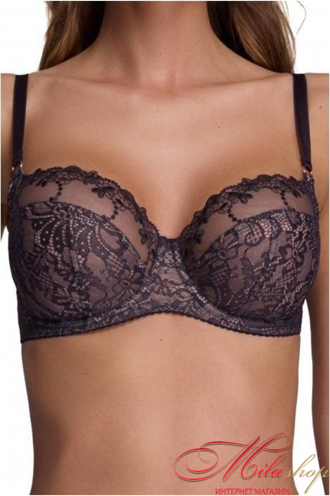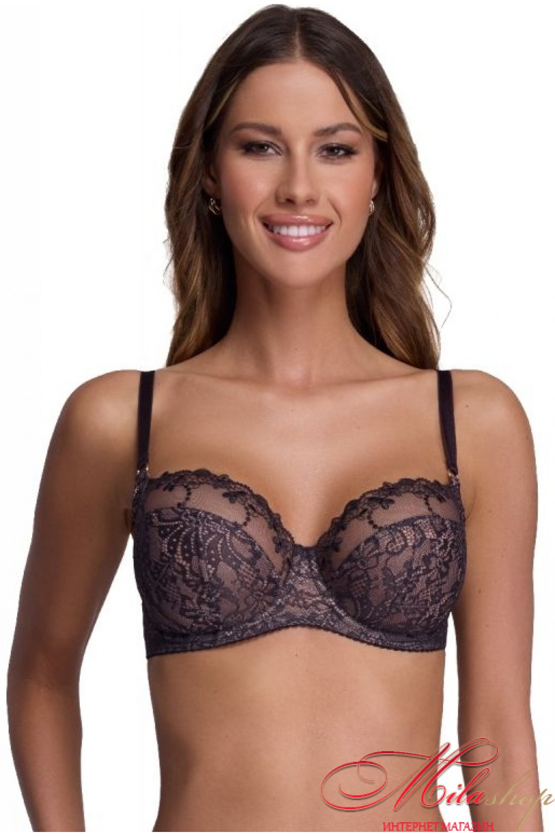 Чарівний бюстгальтер із м'якими чашками на каркасах. Чашки зшивні, глибокі, з потрійним діагональним членуванням та бічною коригуючою деталлю. Нижня частина чашок виконана з ніжного квіткового мережива на підкладці з мікросітки, що стабілізує, верхня деталь - прозора тюлева сіточка з вишивкою. По верхньому краю з внутрішньої сторони підшита тонка резиночка для кращого прилягання. Передня частина пояса мереживна, гладка спинка, з функціонального сітчастого полотна. Бретели не відстібаються, регулюються по довжині, їхня ширина залежить від розміру. На спині триступенева застібка на 2/3 гачка залежно від розміру. Бюстгальтер добре підтримує груди великих і середніх розмірів, збирає її до центру і надає красиву округлу форму. Ava (ава) – якісна жіноча білизна польського виробництва.