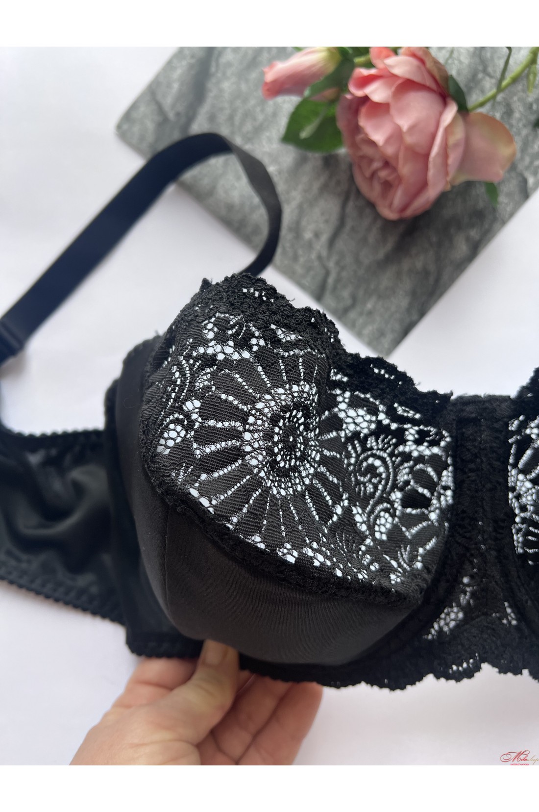 Бюстгальтер на каркасах з еластичного полотна і мережива з пружними пластинами в бічних деталях стану. Нижні деталі чашок дубльовані тонким поролоном і трикотажним бавовняним полотном. Залежно від розміру бюстгальтера кількість гачків на застібці і ширина бретельної стрічки можуть бути різними.