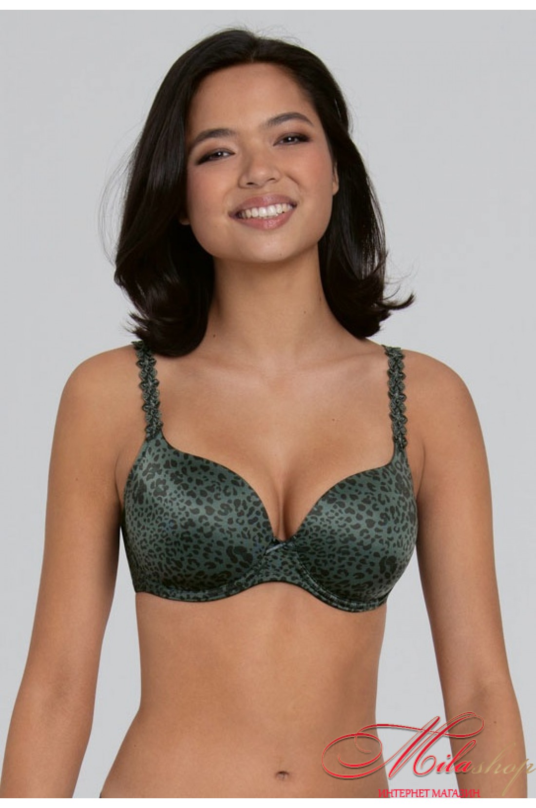 Входить до серії Joy. Щільна гладка безшовна чашка на кісточці. Бретель прикрашена вишивкою з квітковими мотивами. Актуальний animal-принт. Розмірний ряд від A до G