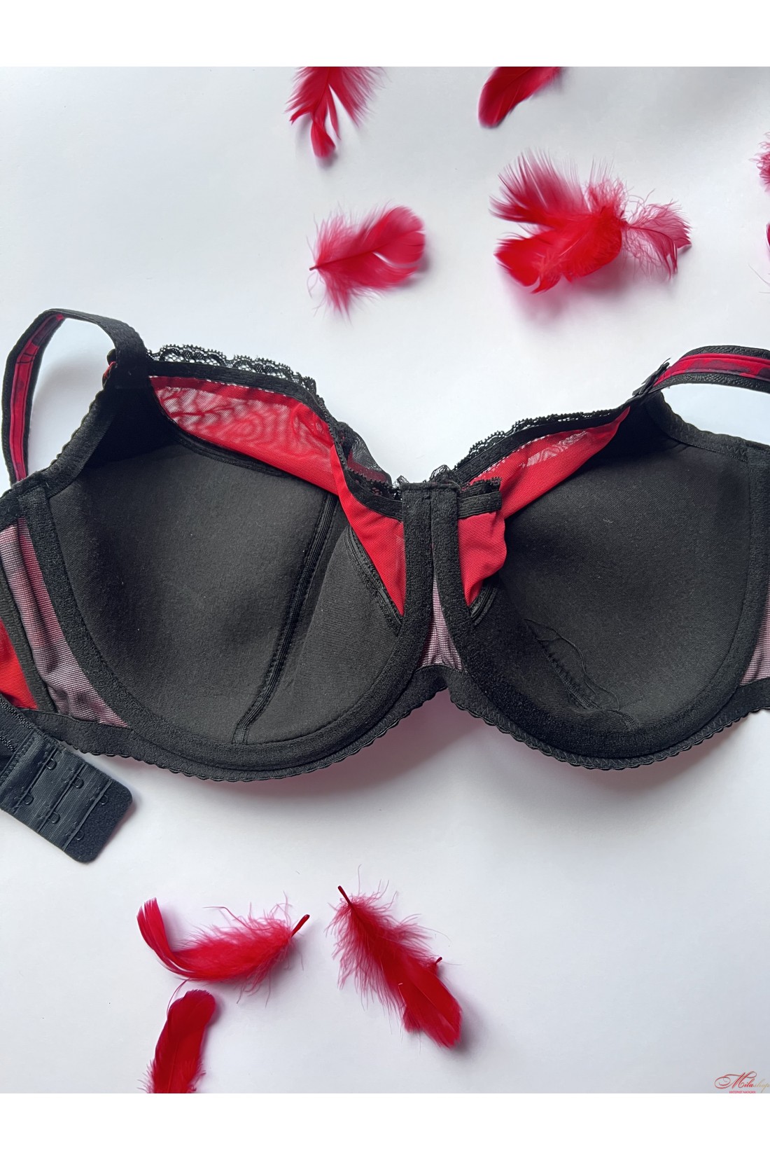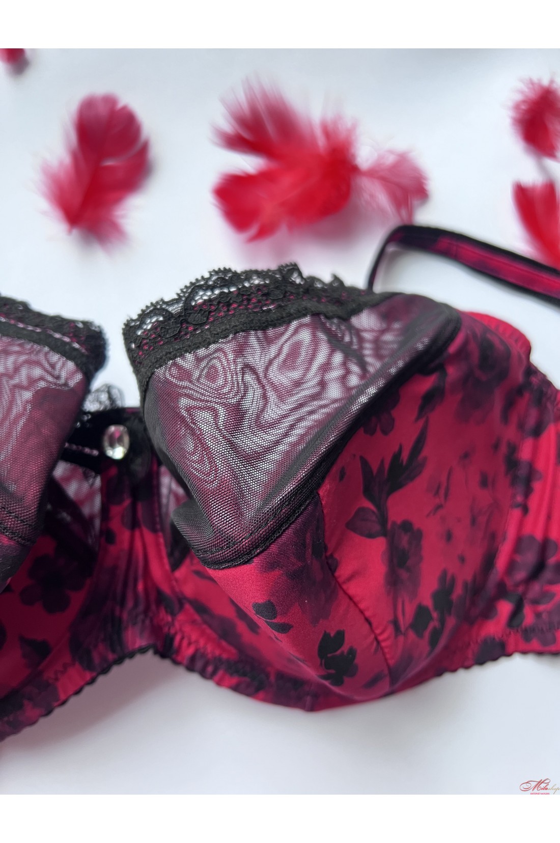 Чашка бюстгальтера на кісточках, на м'якому напівпоролоні, всередині бавовняна підкладка. Бретелі незнімні, регульовані, декорований мікросіточкою.