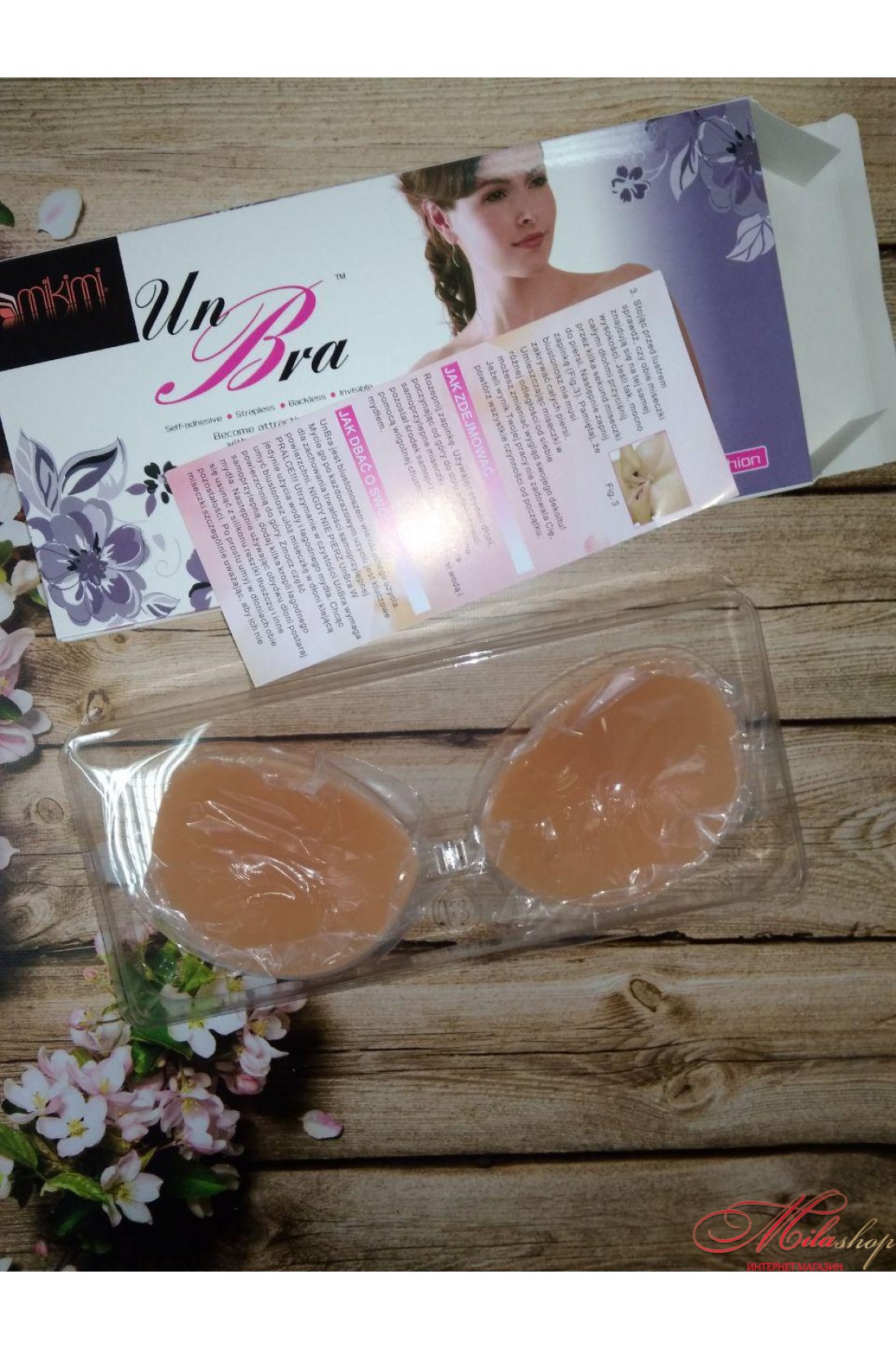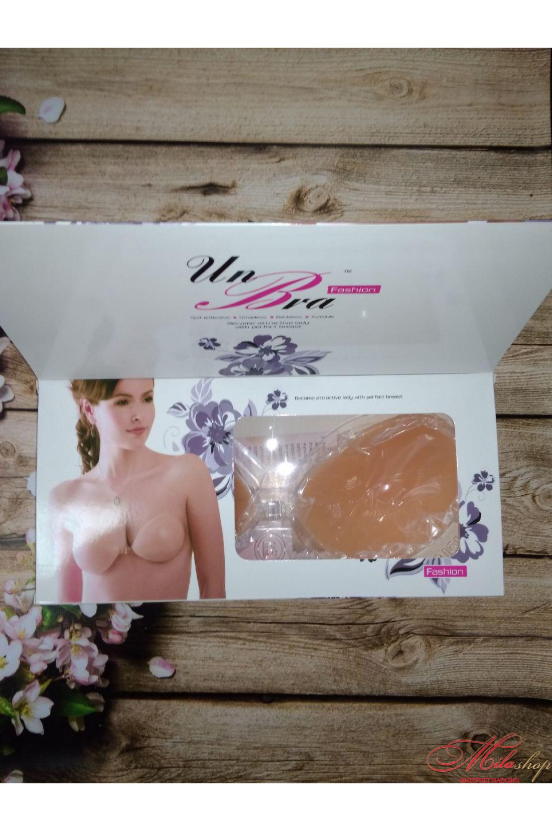 Догляд та зберігання: Після використання виріб потрібно трохи потримати у мильному розчині, потім акуратно промити. Цю процедуру рекомендується повторювати після кожного використання для збереження гарної форми та клейких властивостей чашечок. Надягайте тільки сухий бюстгальтер (на сонці або батареях опалення таку білизну краще не сушити), під ліфчиком на шкірі грудей не повинно бути кремів, лосьйонів або парфумерних продуктів. Зберігати такий бюстгальтер Un Bra необхідно у пластиковій упаковці, яка йде в комплекті з виробом.