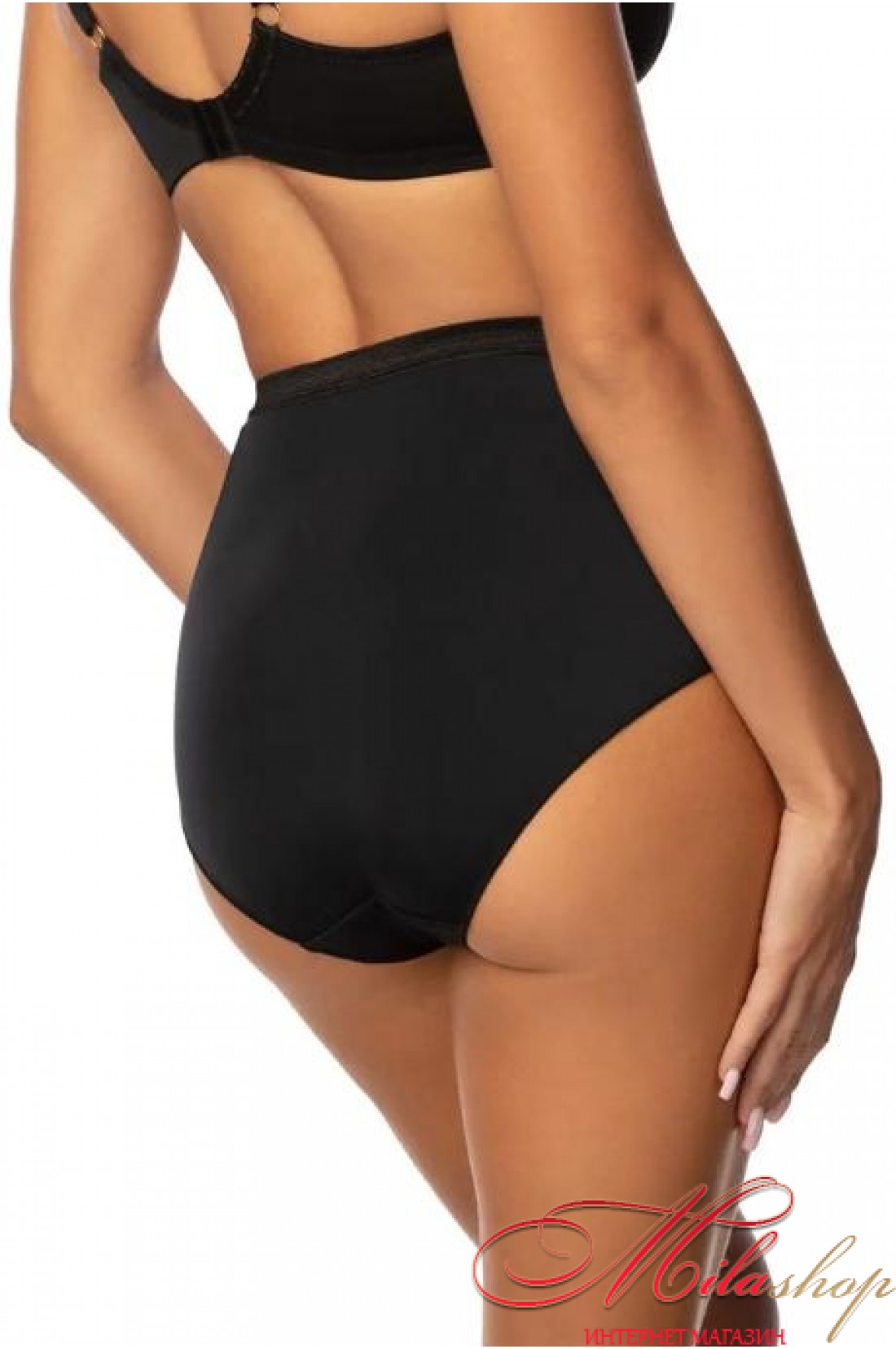 Трусики з високою лінією талії, прикривають сідниці. Стриманий декор у вигляді кількох вертикальних смуг підкреслює стильний дизайн білизни. Виготовлені з високоякісної, практичної тканини: не мнуться, не розтягуються, не втрачають колір. Висока еластичність тканини забезпечує ідеальну посадку по фігурі. Трусики не сповзають і не створюють складок. Доповнені ластовицею з натуральної бавовни. Розміри: 36/83-87см, 38/88-92см, 40/93-97см, 42/98-102см, 44/103-107см, 46/108-112см, 48/113-117см.