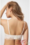 Чашка без пуш-ап, виготовлені з тонкого поролону, відмінно тримають форму. Усередині – бавовняний дубляж. Зверху чашка прикрашена тонким мереживом. Усередині сховані кісточки. Каркас і вертикальний шов - піднімає груди, створює округлу форму, без додаткового об'єму. Широка перемичка збирає груди до центру, підійде жінкам із широко посадженими грудьми. Пояс з мереживною тасьмою. Бретель незнімна. Потрійна застібка.