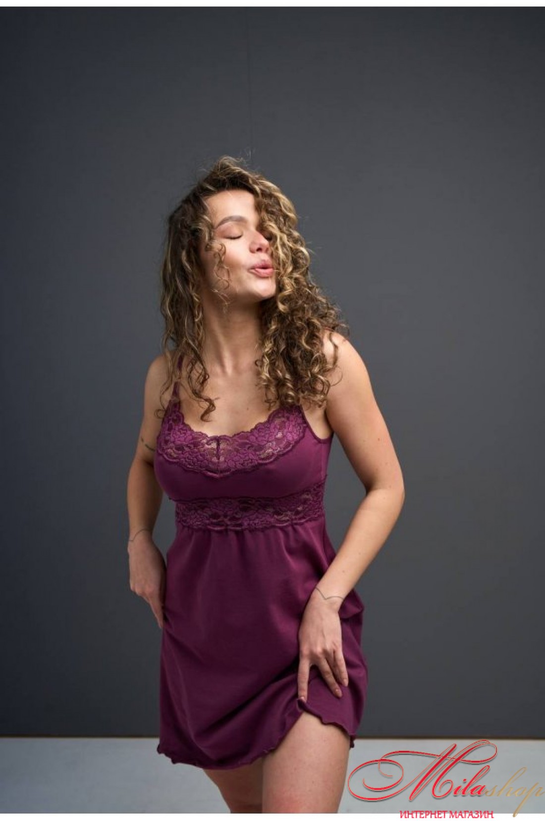 Ніжна, чуттєва сорочка на тоненьких бретелях, що регулюються. Виконана із високоякісного бавовняного полотна. Лінія талії та лінія декольте прикрашені м'яким, еластичним мереживом.