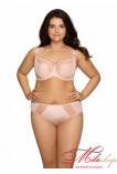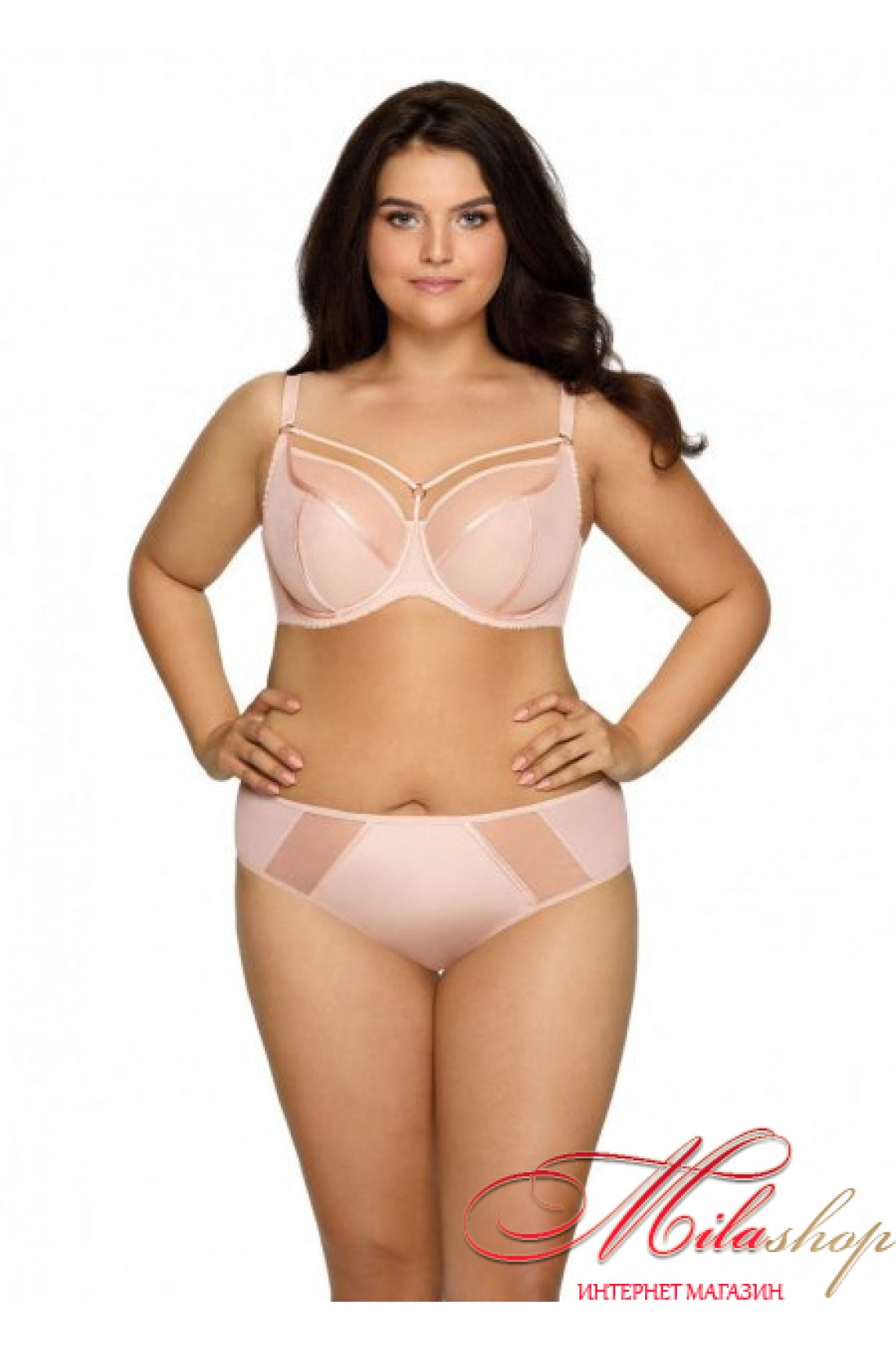 - Чудовий бюстгальтер - гладкі м'які чашки для підтримки пишних грудей, верхня частина чашок із мікросіточки, лінія декольте прикрашена декоративними ремінцями, гладка спинка. Широкі бретелі не відстібаються, регулюються довжиною.
