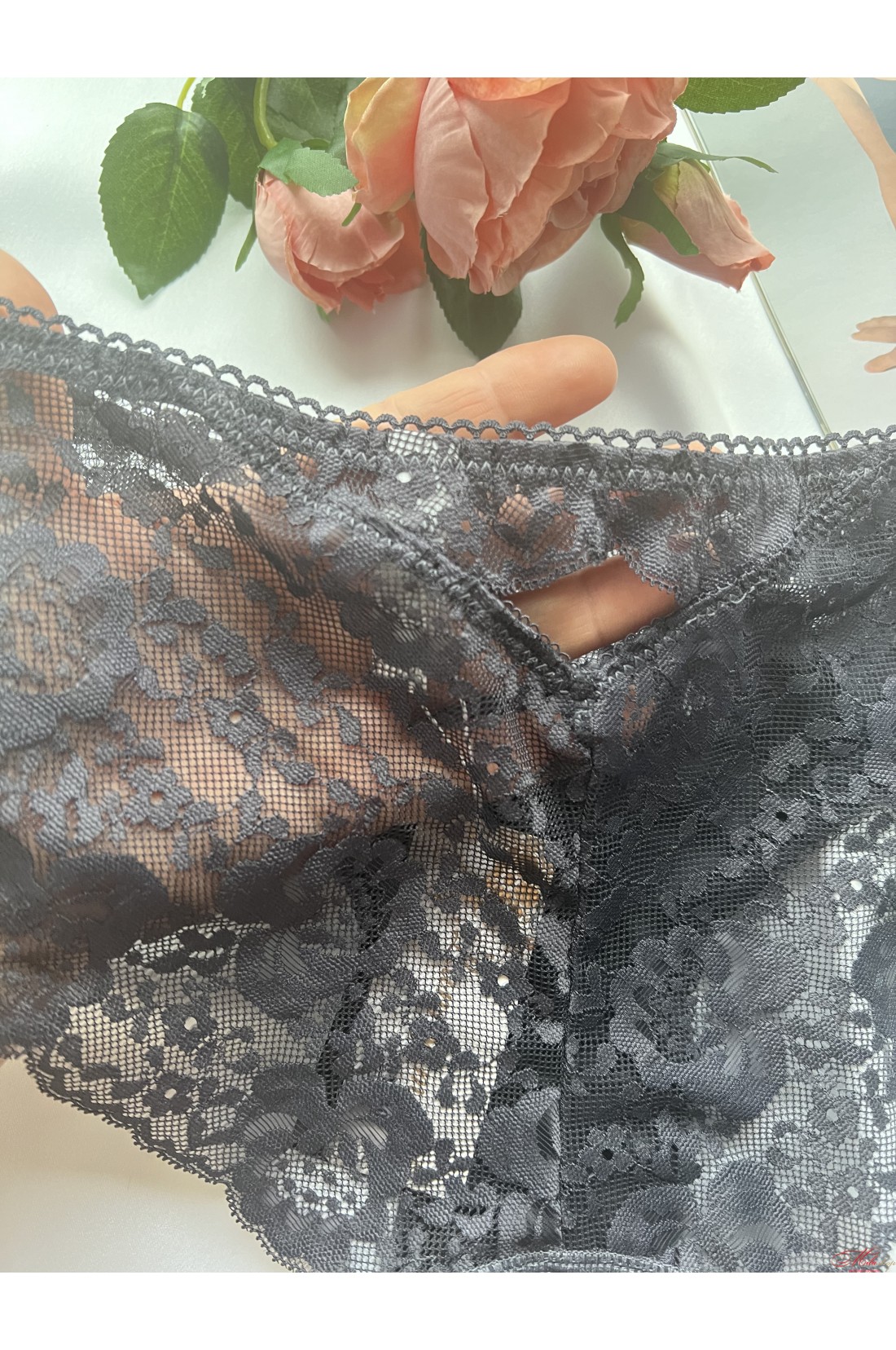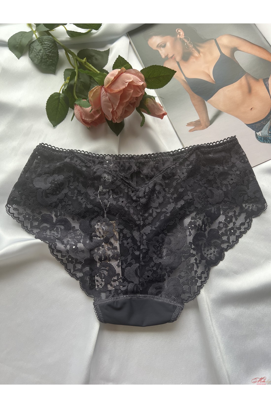 Трусики сліпи із мікрофібри та мережива Lanny Mode 51730 темно-сірі