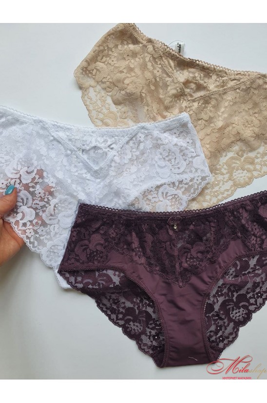 Елегантні трусики-сліп виконані з мікрофібри та м'якого мережива. Підвищена лінія талії.