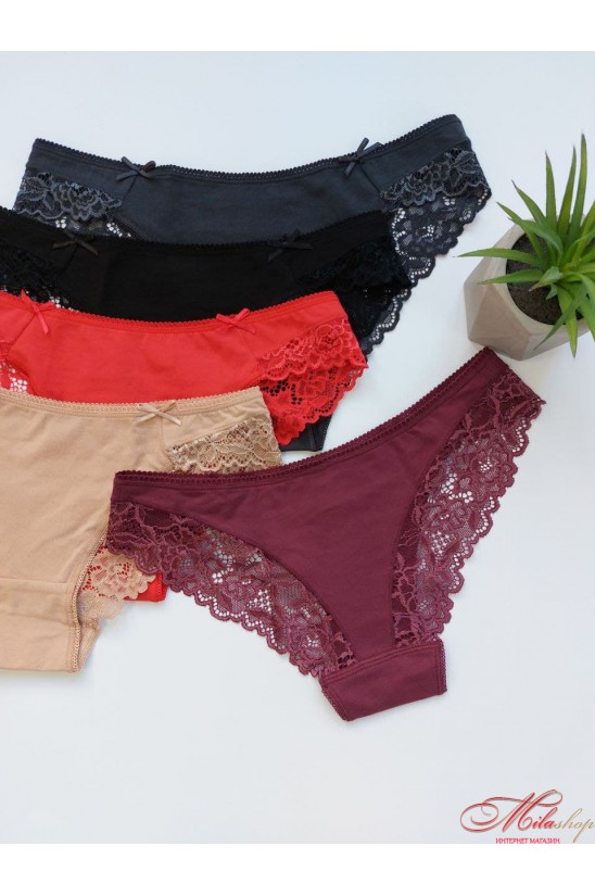 Женские трусики с низкой линией талии. Выполнены из нежнейшего хлопка с кружевными вставкам.