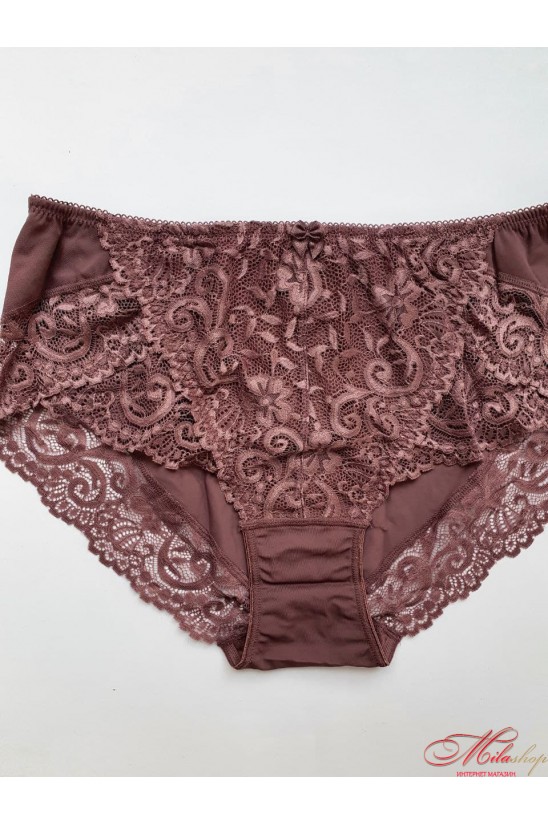 Вишукані трусики-сліп виконані з мікрофібри та мережива красивого кольору капучіно. Підвищена лінія талії.