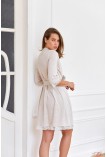 Прекрасний халатик з поясом та красивими мереживними вставками. Крій на запах дозволяє регулювати посадку халата і розмір. Рукави 3/4. Довжина халата до коліна. Виконаний їхній бавовни.