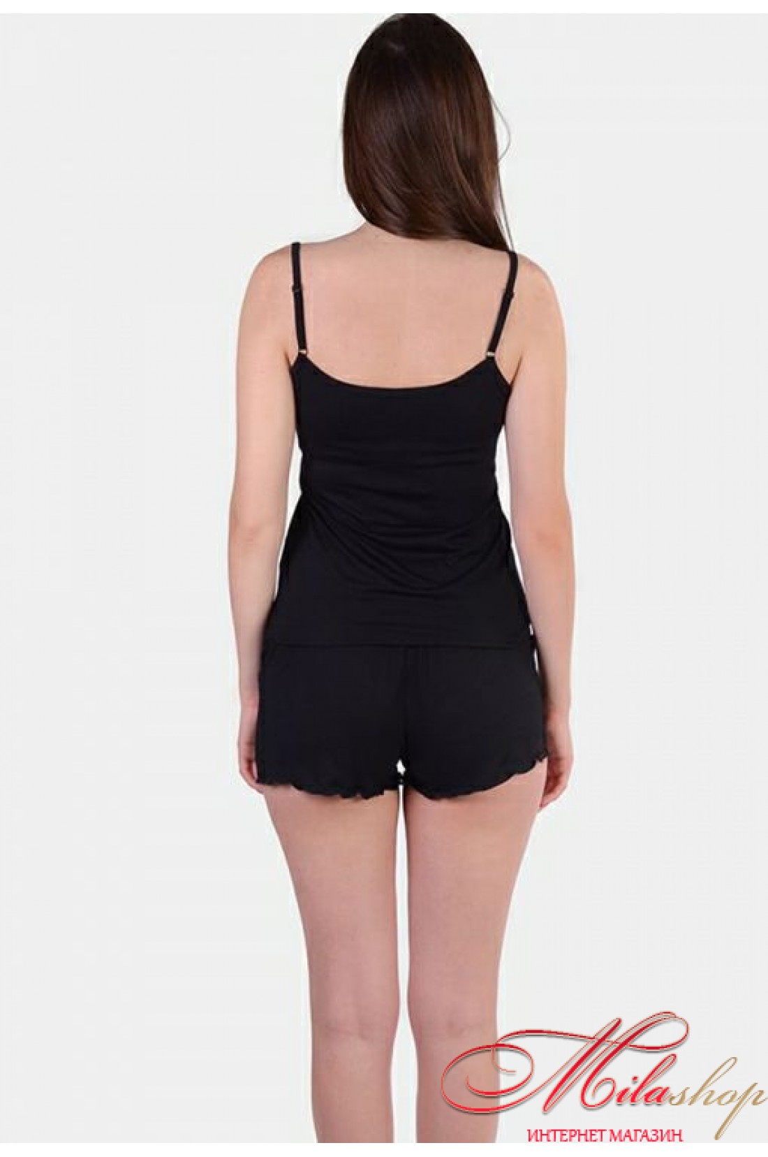 Комплект складається з маєчки на тоненьких бретелях та коротеньких шортиків. Виконані з найніжнішої віскози із вставками із елегантного мережива.
