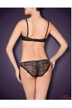 Элегантный комплект из сетчатого полотна и кружева. Бюстгальтер с формованными поролоновыми чашками, по верхнему срезу чашек - отделка атласная лента, в нижней части украшен кружевом. Трусики - слип со средней линией талии, выполнены из высококачественного кружевного полотна.