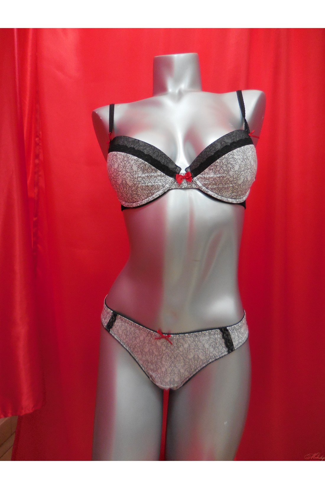 Стильный, эффектный комплект нижнего белья. Бюстгалтер со съемным пуш-апом, с хлопковым подкладом изнутри. Трусики- стринги с низкой линией талии.