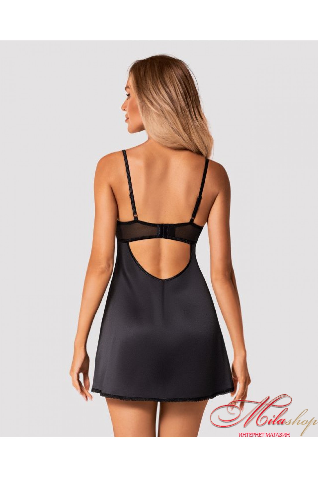 Сексуальна грайлива сорочка, що ідеально підкреслює фігуру. Виконана з мікрофібри, гарного мережива та мікросіточки. Укорочена, що відкриває сідниці і спину роблять образ карколомним.