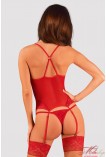 Сексуальний корсет з трусиками, ліф з м'якими чашками на кісточках підкреслює природну форму грудей, бретелі не відстібаються, регулюються по довжині, спинка з мікросітки, пажі для панчіх не відстібаються, регулюються по довжині, трусики стрінги з мережива, панчохи до комплекту не входять. Корсет з підв’язками для панчіх, має досить цікавий крій. Талію чуттєво обволікає м’який та еластичний матеріал із мереживними вставками з боків. Бюстгальтер-халтер прикрашений вертикальною мереживною вставкою, яка створює делікатне підсвічування в зоні сосків. Бретелі стартують від верхньої частини ліфа і прямують до шиї, а ззаду перехрещуються і мають можливість регулювання за довжиною. Дизайн бюстгальтера задуманий так, щоб виразити красу форм грудей, водночас забезпечуючи максимальне підтримання завдяки кісточкам у ліфі та регульованим бретелям. Варто зазначити маленьку підвіску срібного кольору з іменним знаком бренду Obsessive. Стрінги мають класичний крій із низькою посадкою, матеріал мереживо, є ластовиця на лобку для зручності носіння на повсякденній основі.